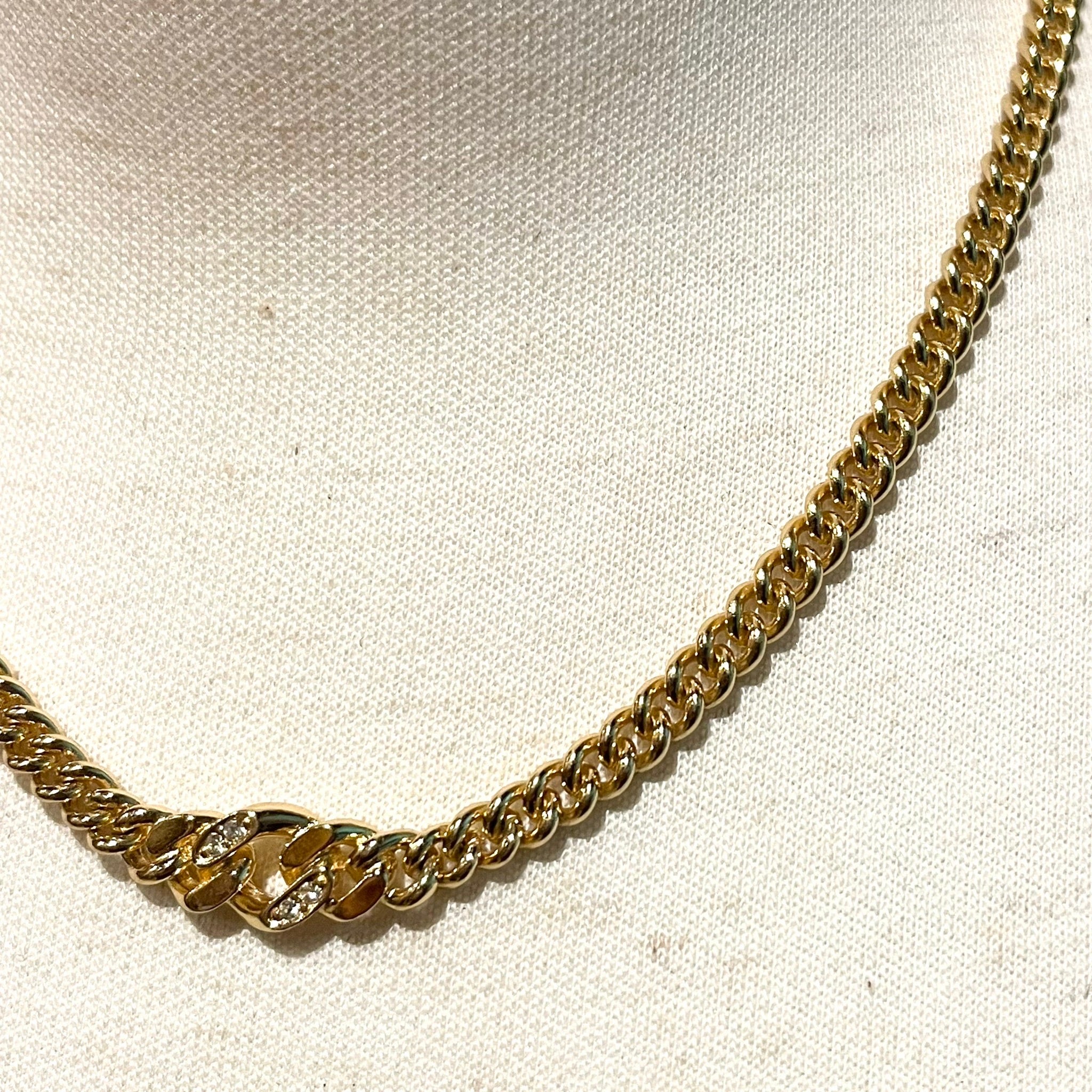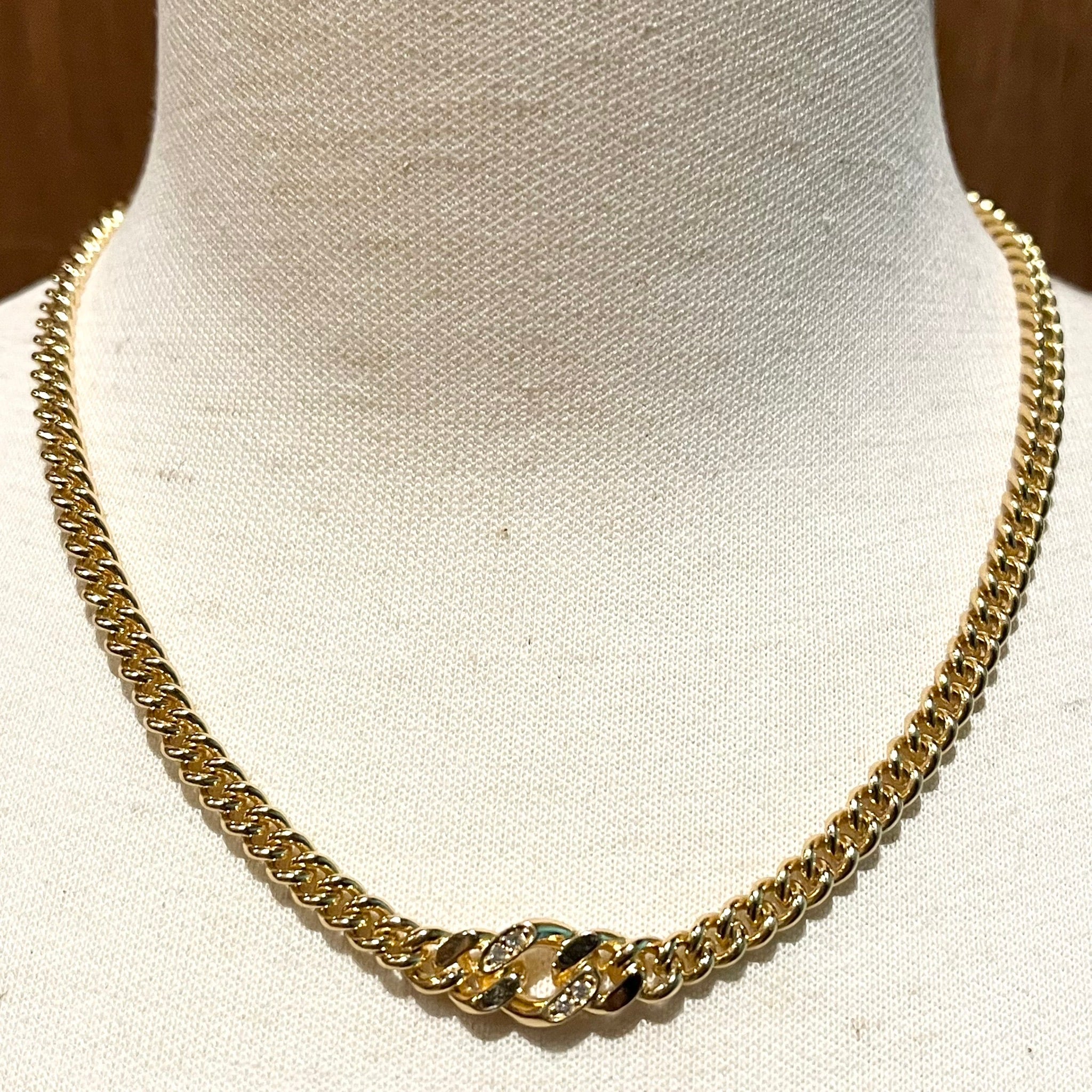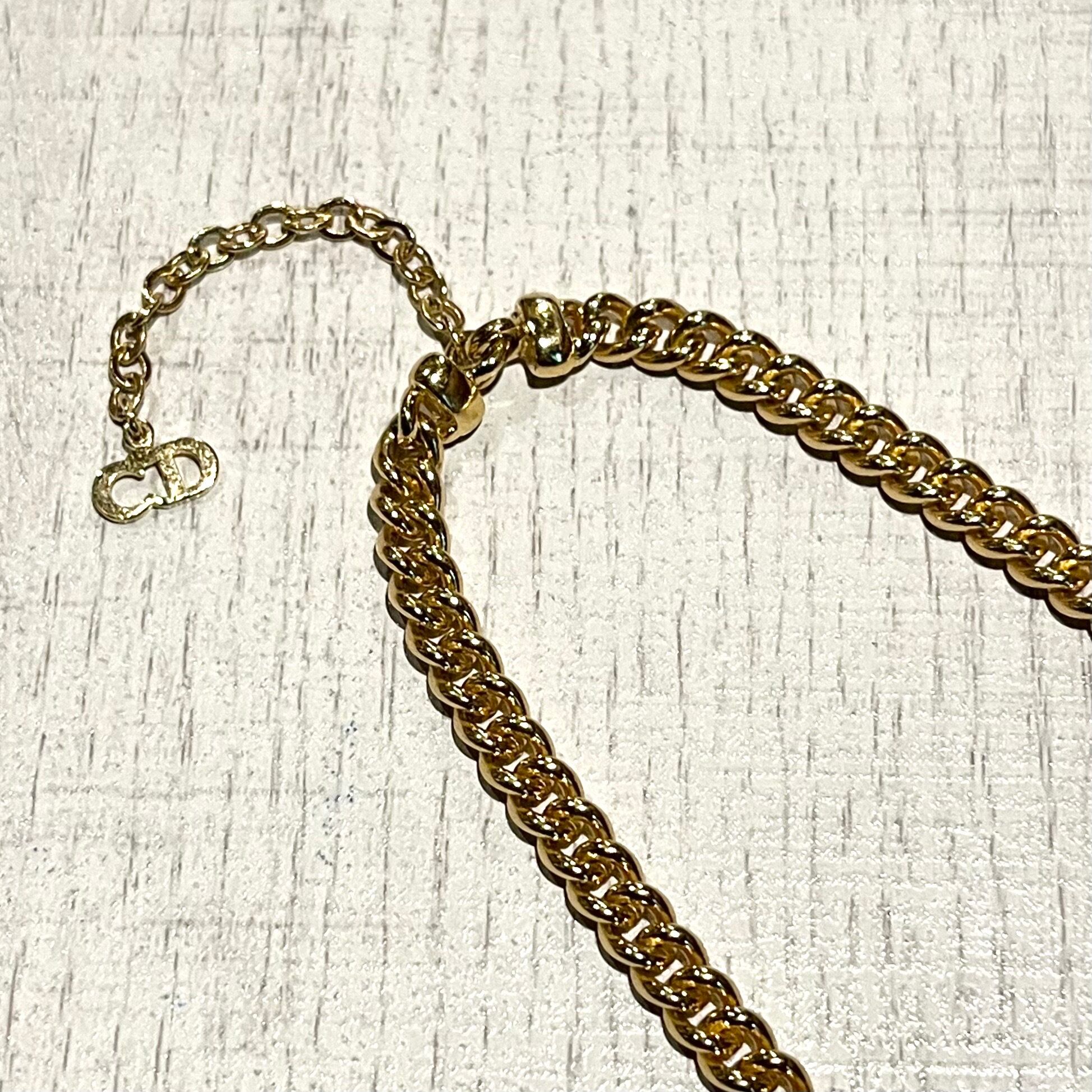 DIOR GOLD RHINESTONE CURB CHAIN NECKLACE/ゴールド/ネックレス