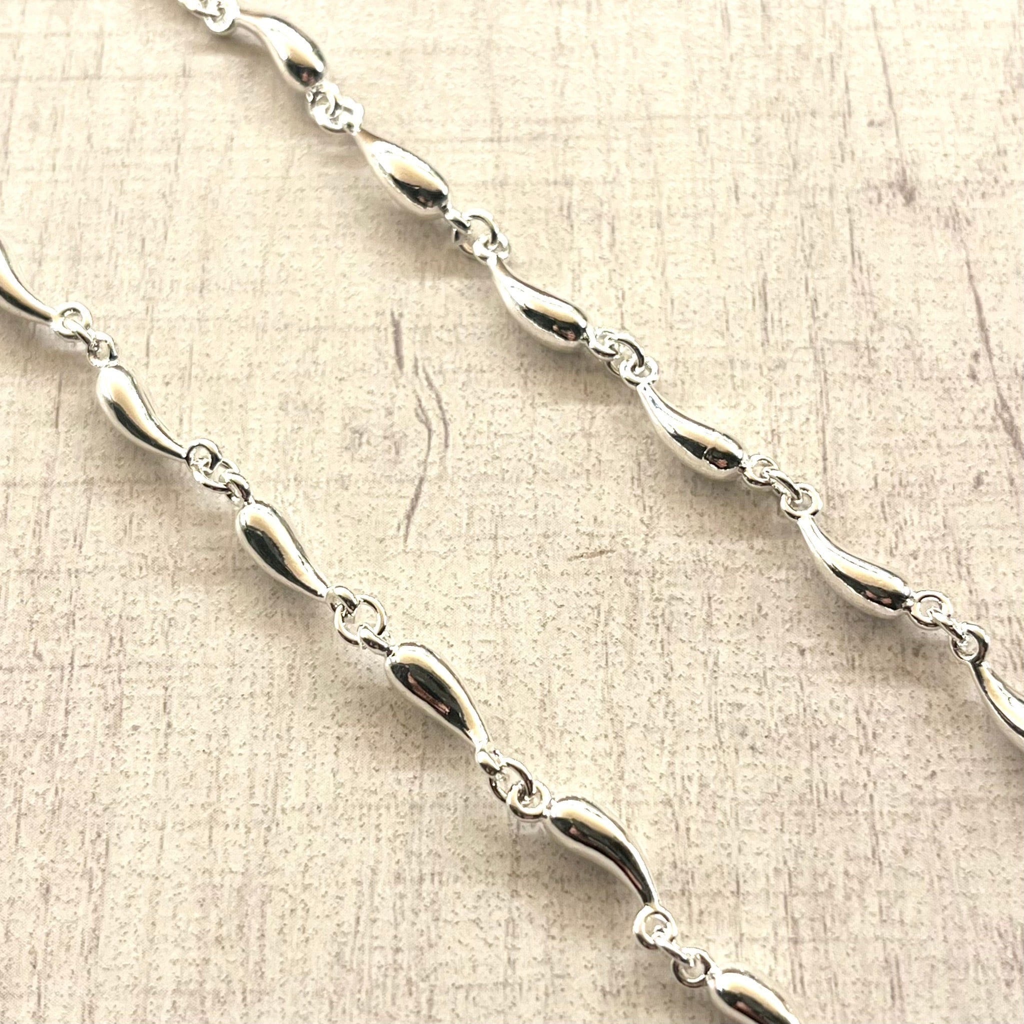 ぷっくりとした立体的なティアドロップ型のパーツを贅沢に連ねた、エレガントなネックレスです。シルバーの柔らかくも力強い光沢が滑らかな輝きを放つ、主役級の逸品です。