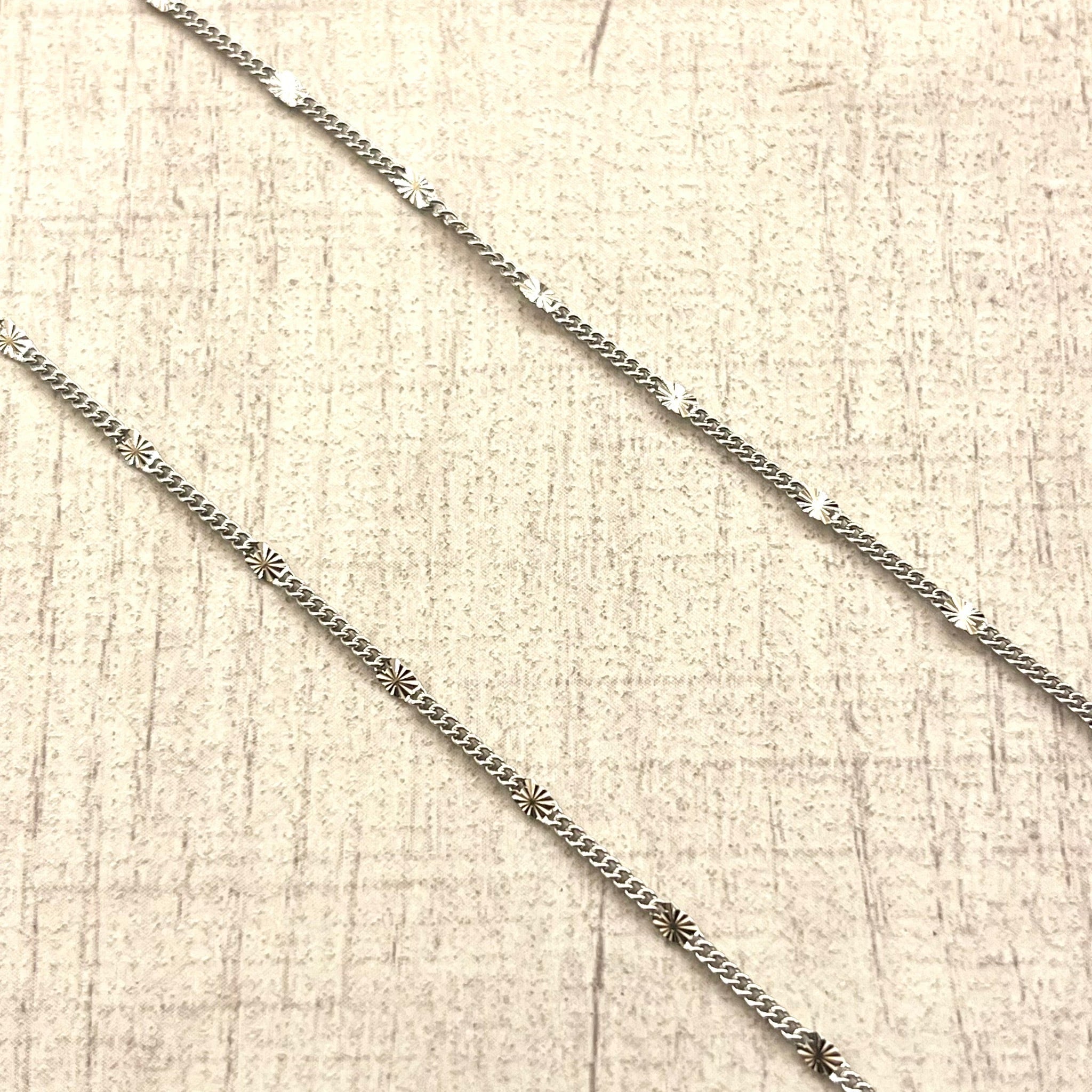 細かなカットが施されたパーツを等間隔にあしらったデザインで、シルバーの滑らかな質感と繊細な輝きが魅力の逸品です。