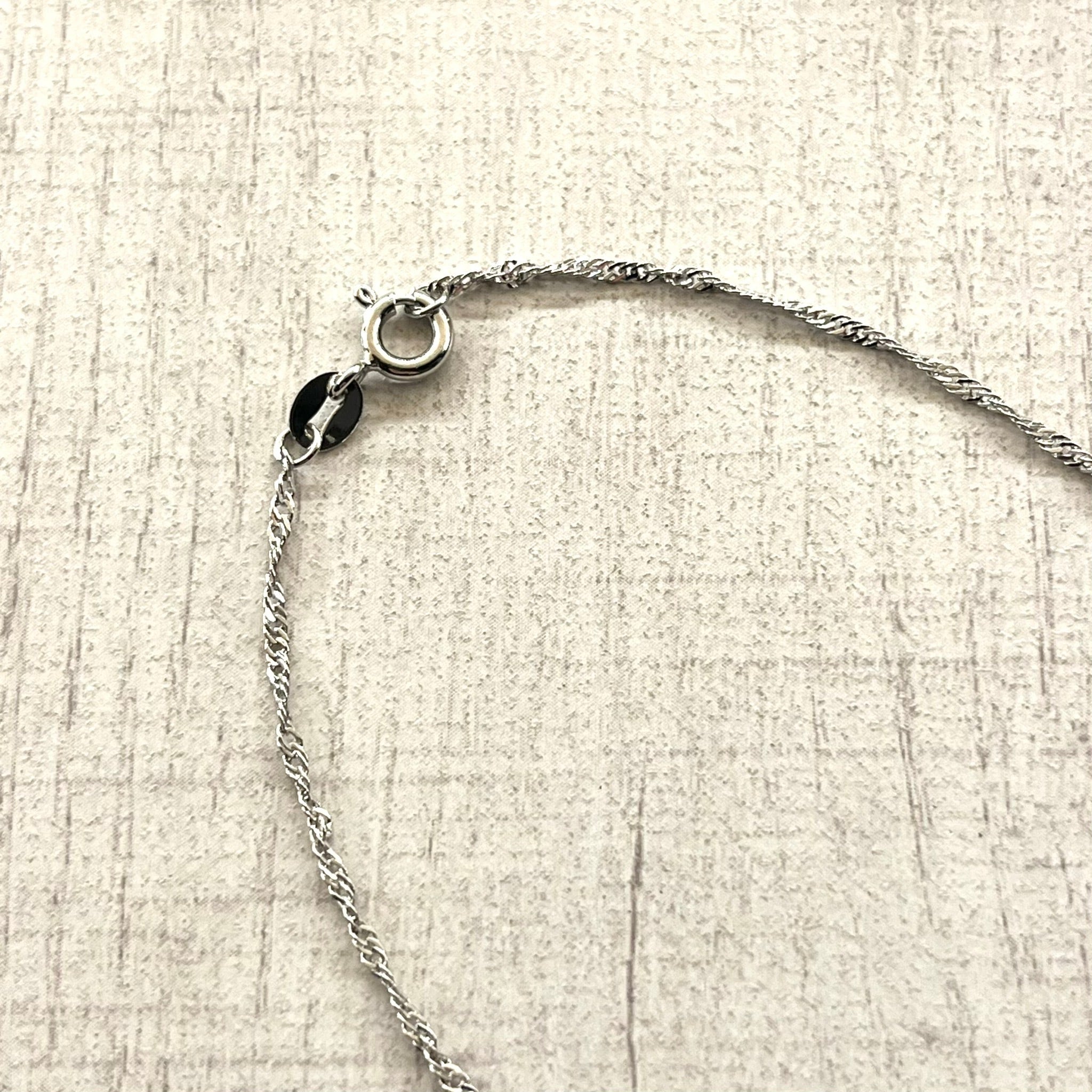 螺旋状に連なったツイストチェーンが目を引くデザインです。細身で軽やかなフォルムながら、上品かつ華やかな存在感を放つ逸品です。