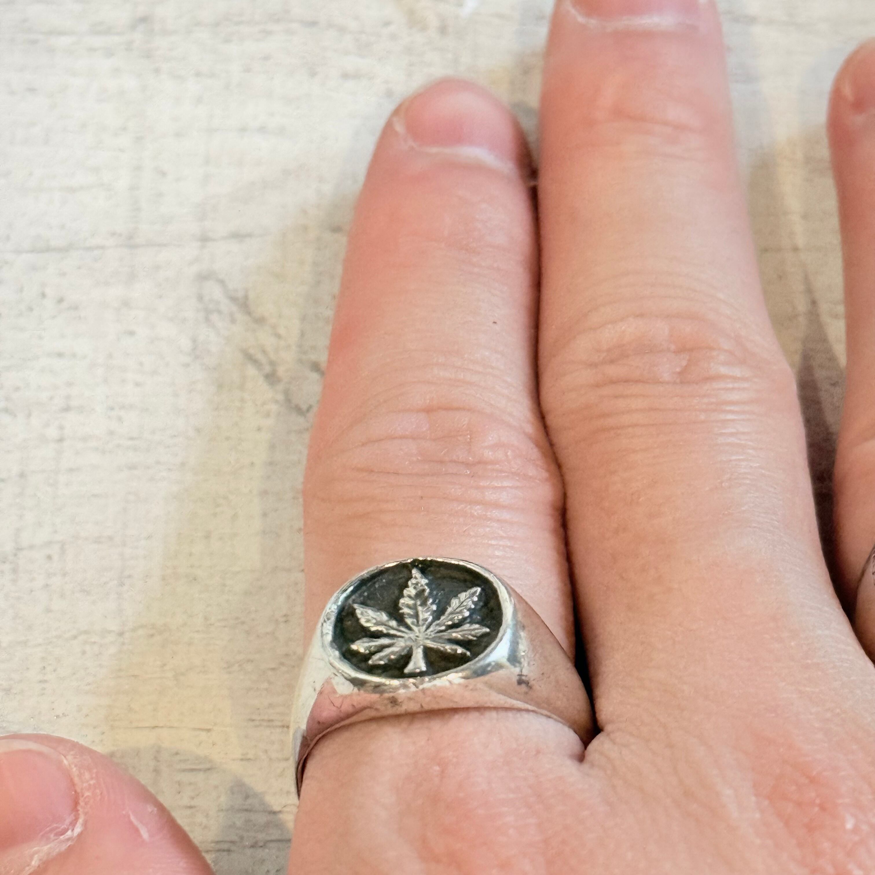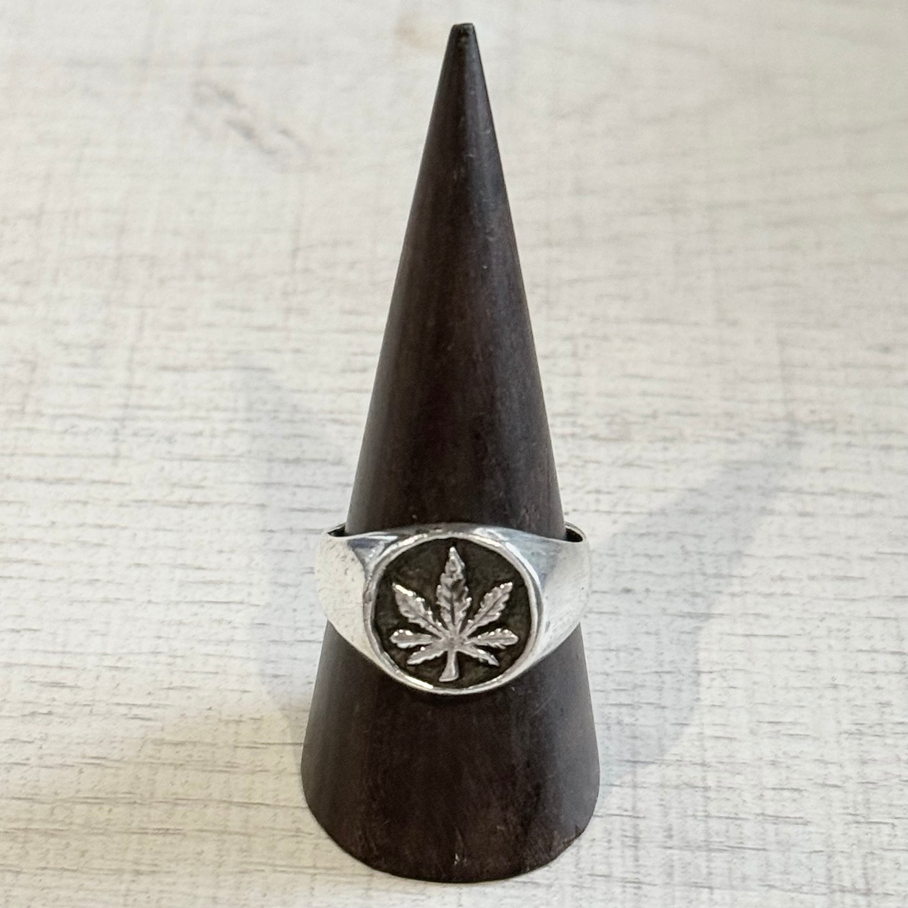 CANNABIS LEAF MOTIF SIGNET RING-SILVER925-リーフリング