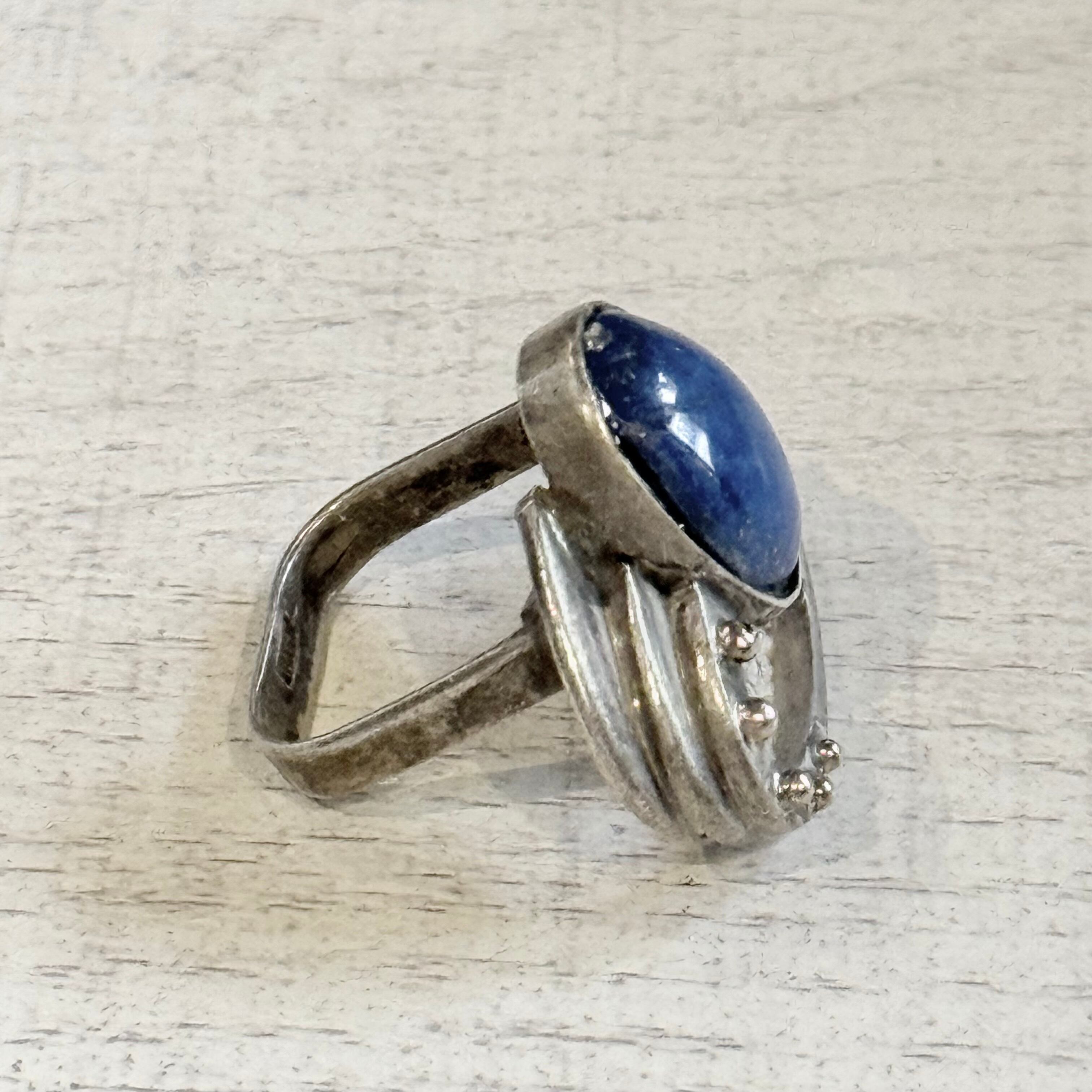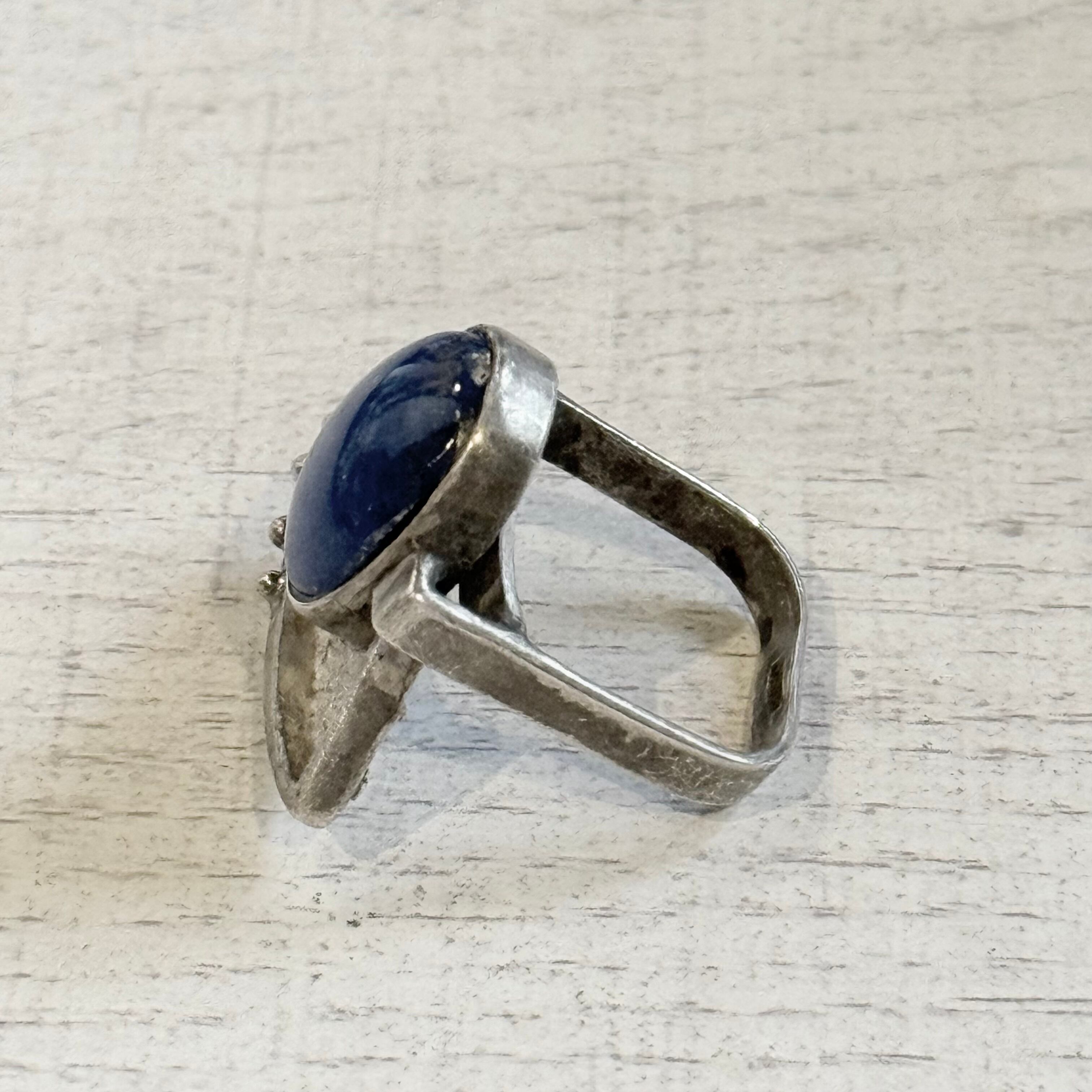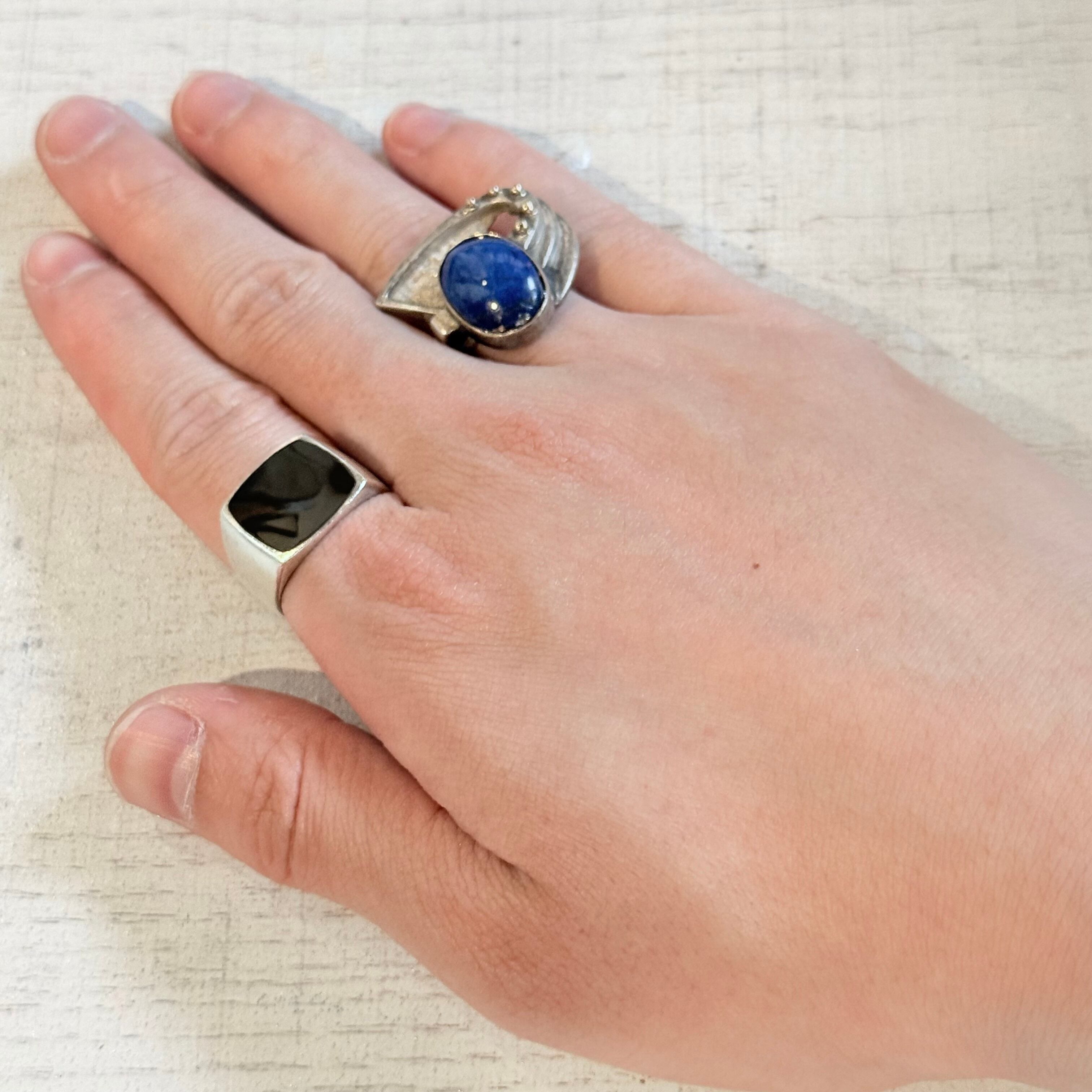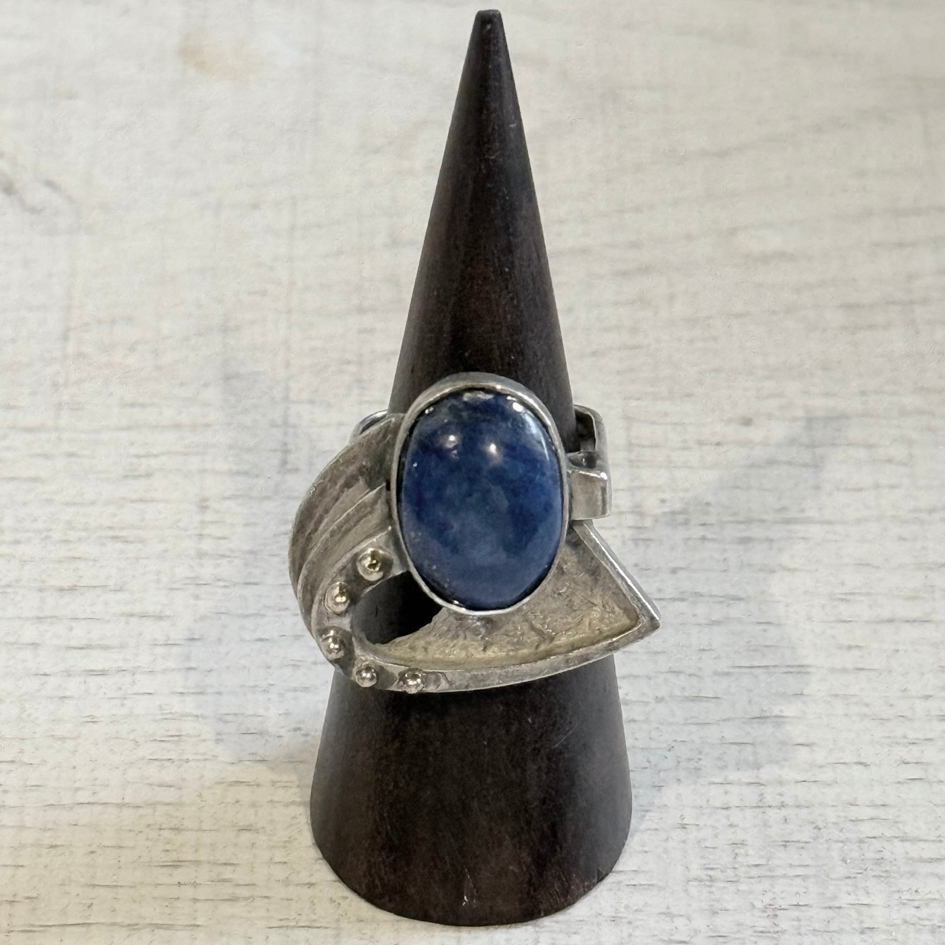 BLUE GEMSTONE ASYMMETRICAL STATEMENT RING-SILVER925-アシンメトリーリング