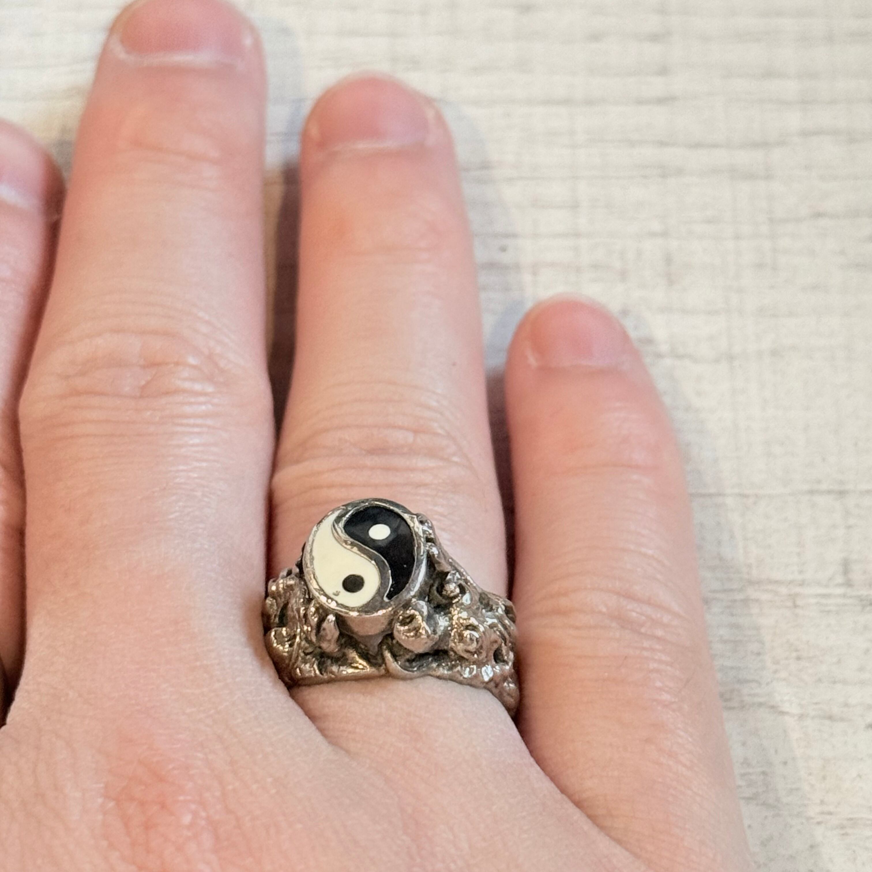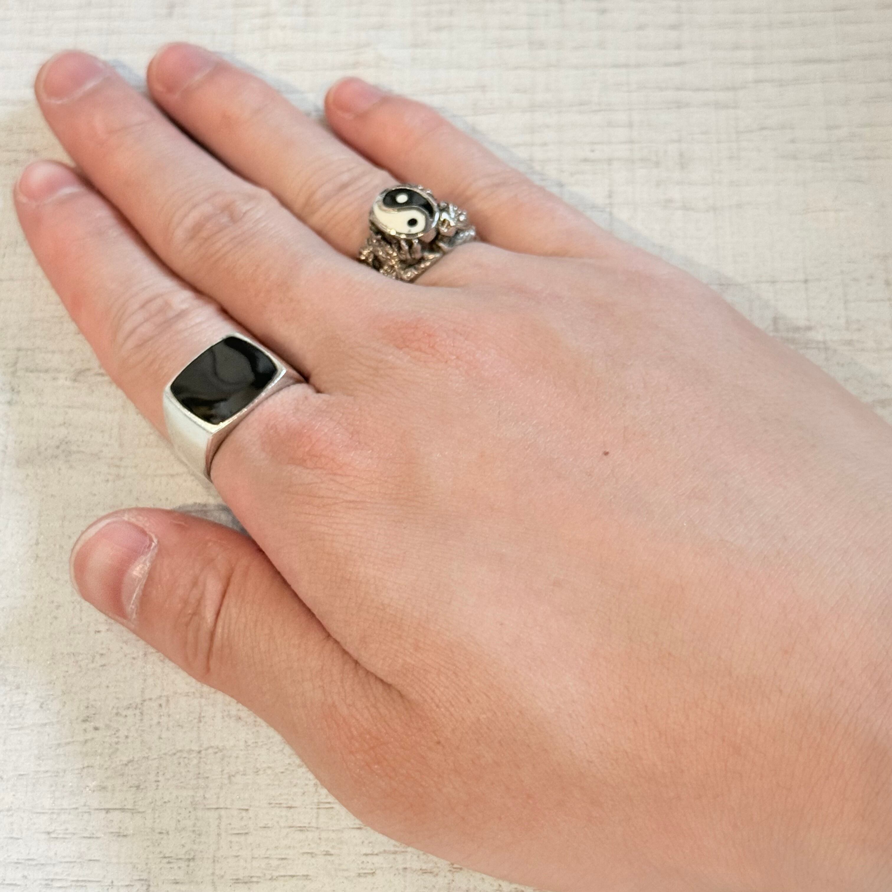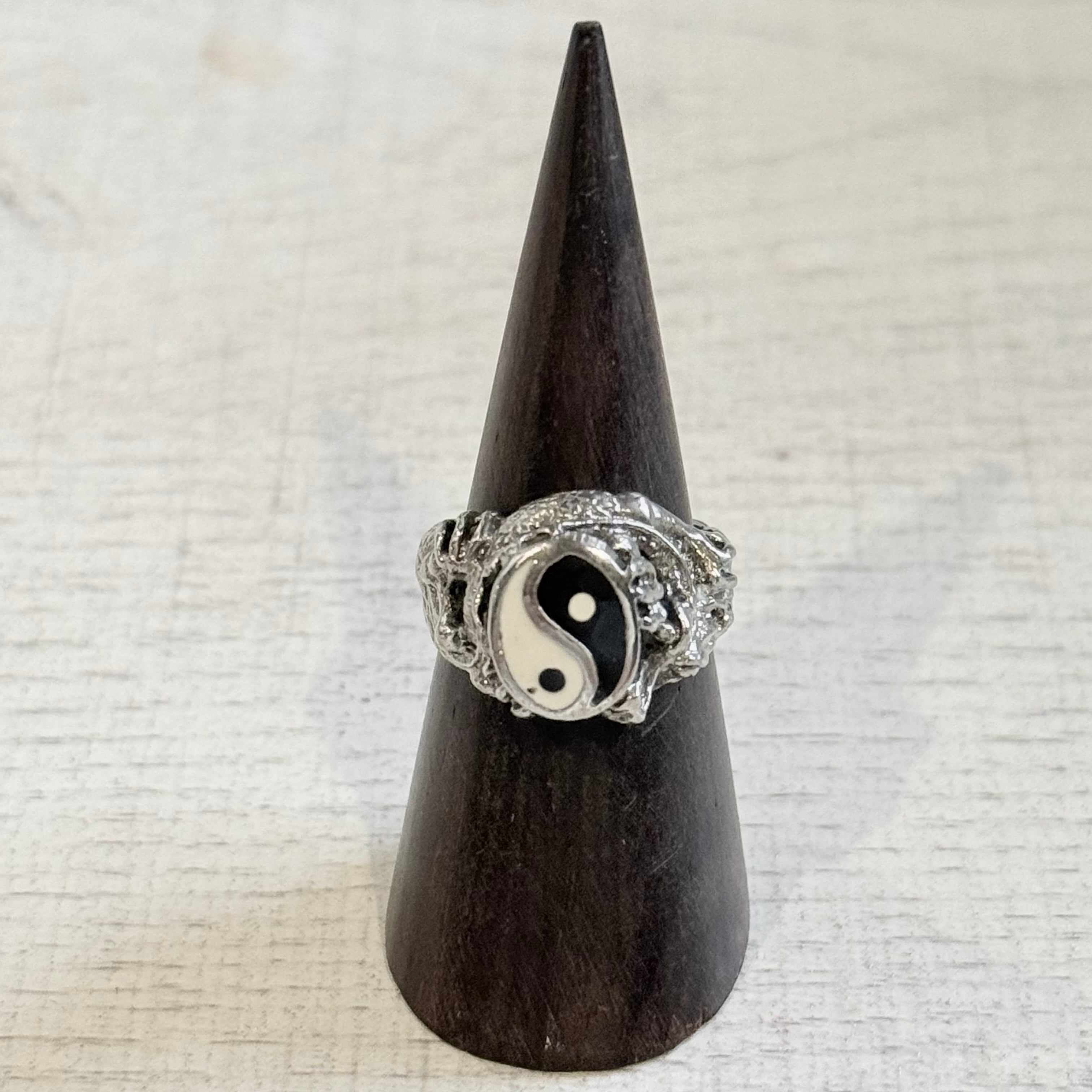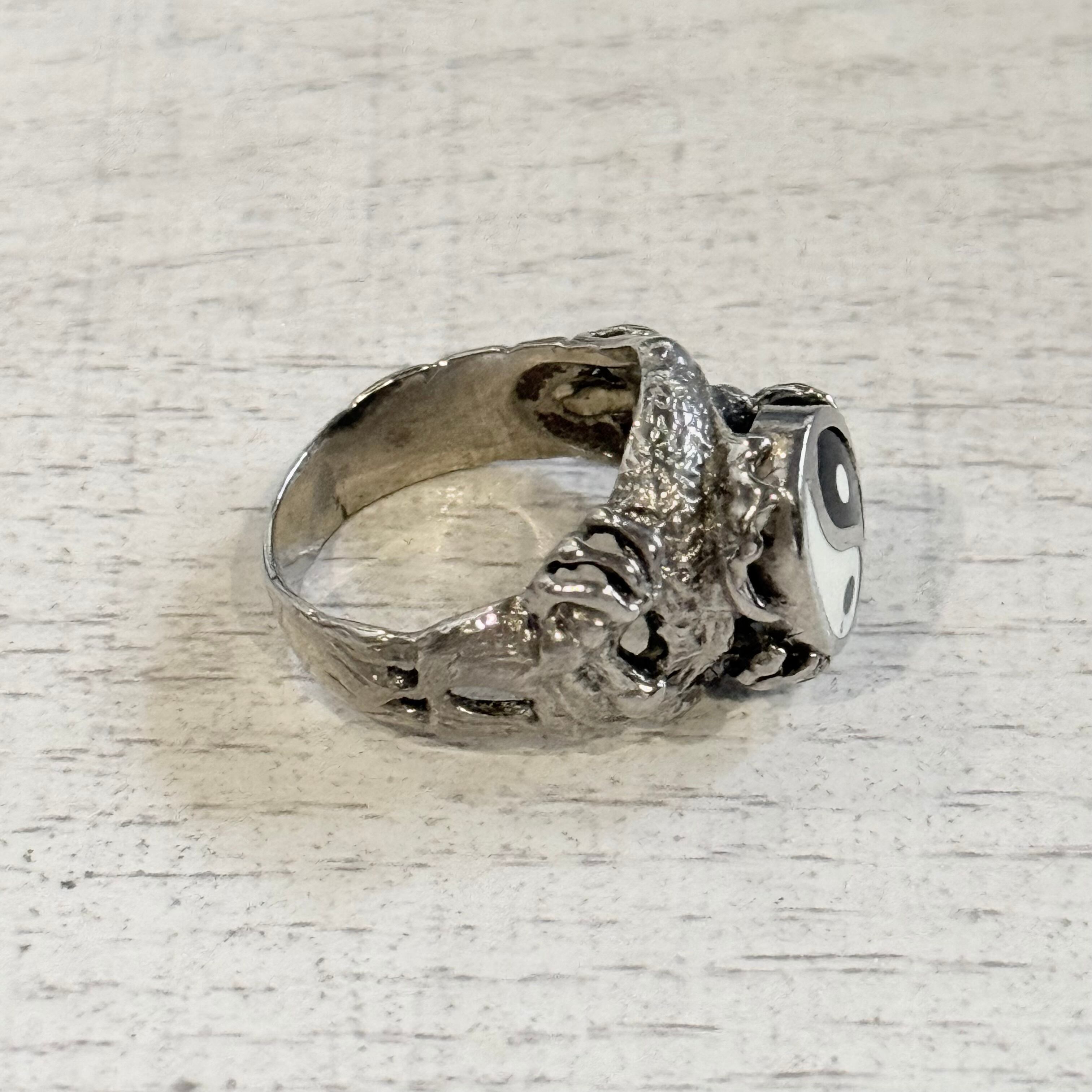 陰陽(Yin-Yang)のマークをセンターに配したデザインリングです。サイドに施された複雑なテクスチャーや造形が、パンクかつ神秘的な雰囲気を演出。コーディネートの主役として際立つ、個性的なスタイルを好む方におすすめの一本です。