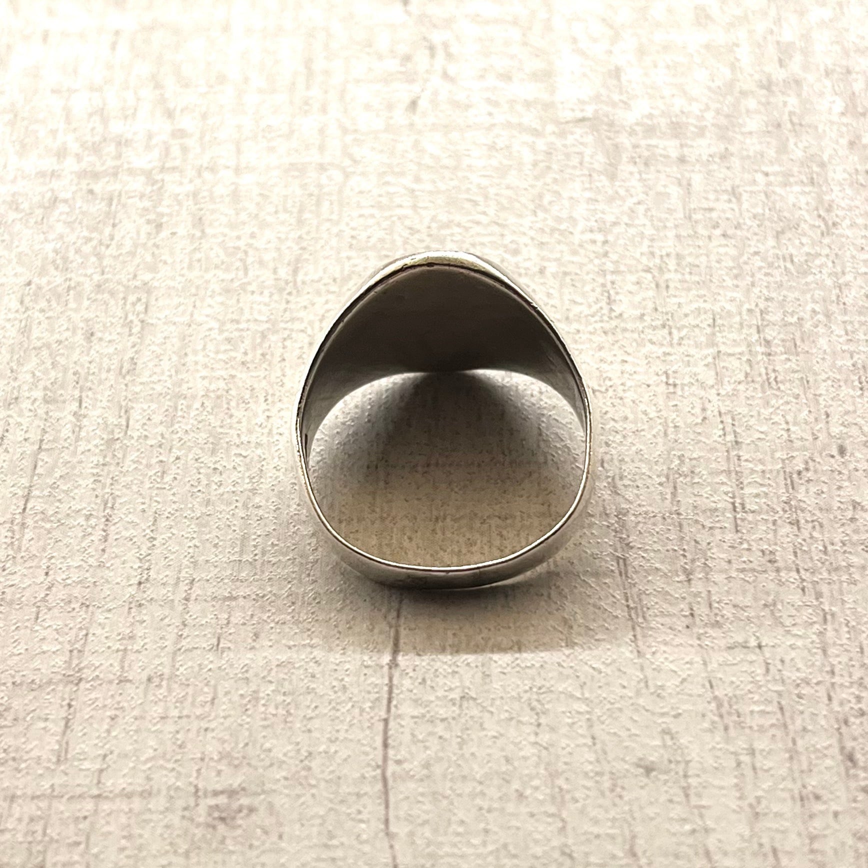 重厚感のあるシグネットリングに、麻の葉のようなモチーフが配されたデザインで、インパクト抜群の逸品です。