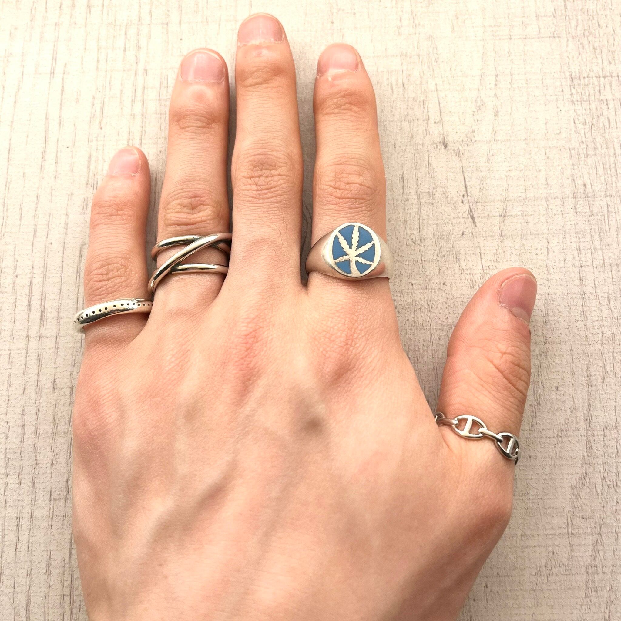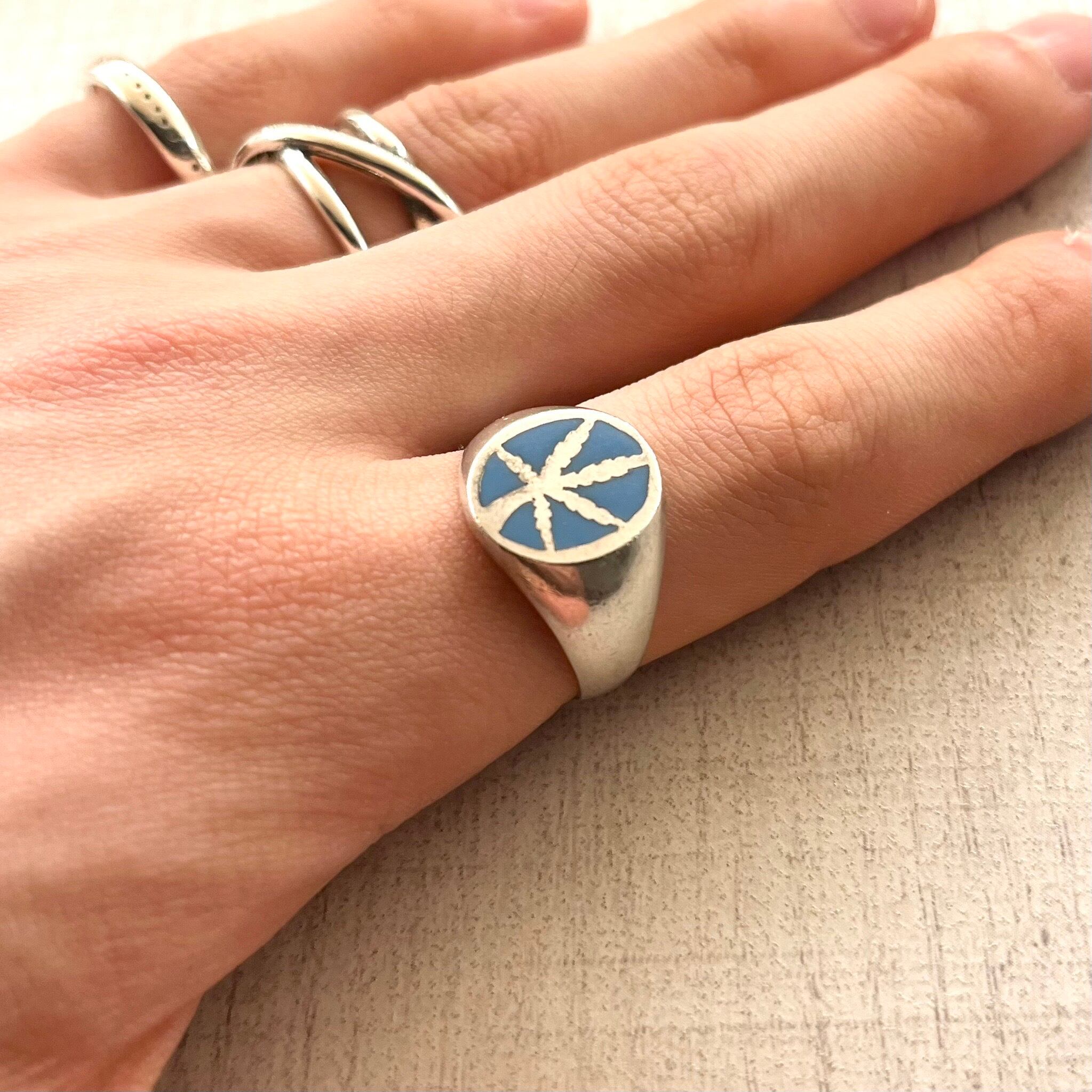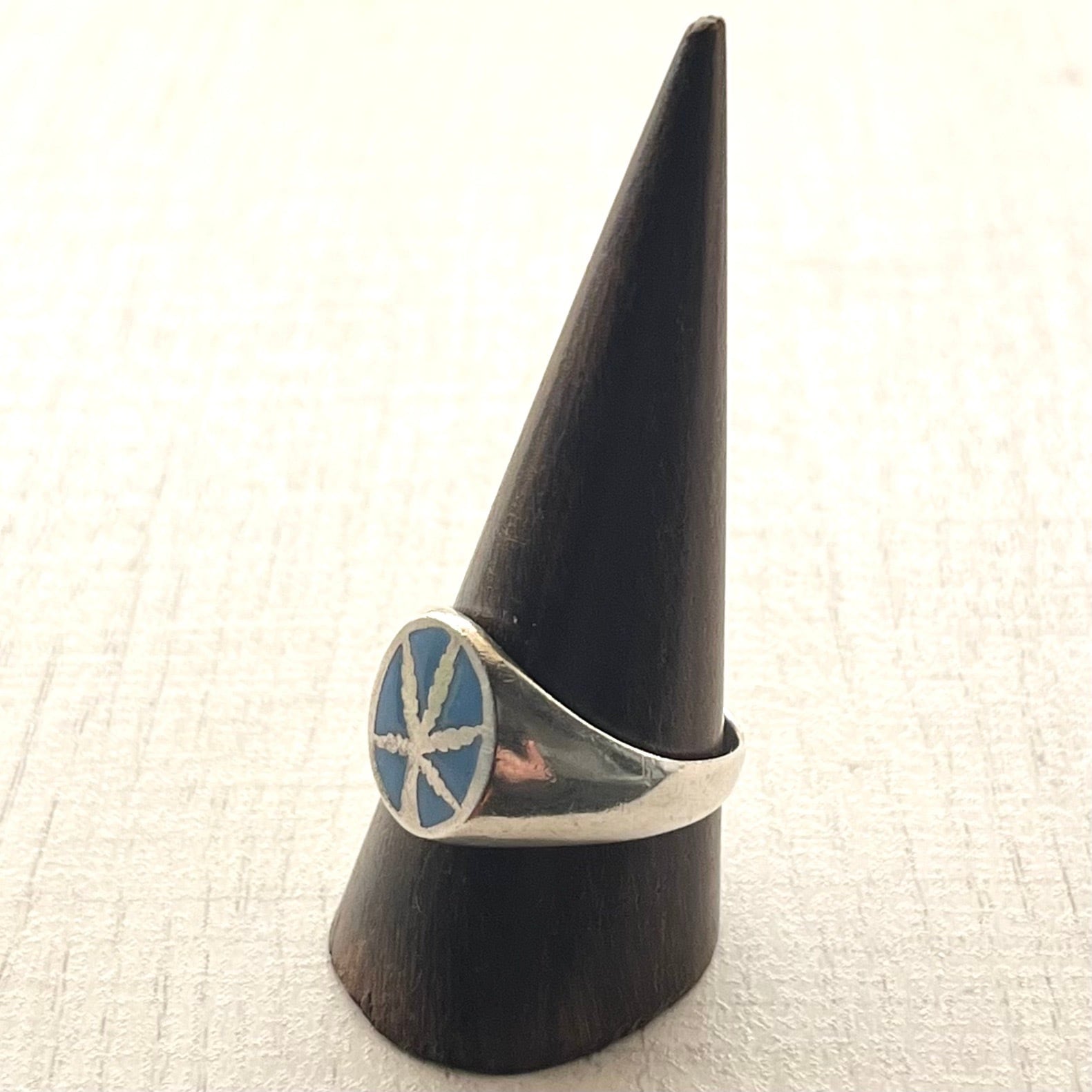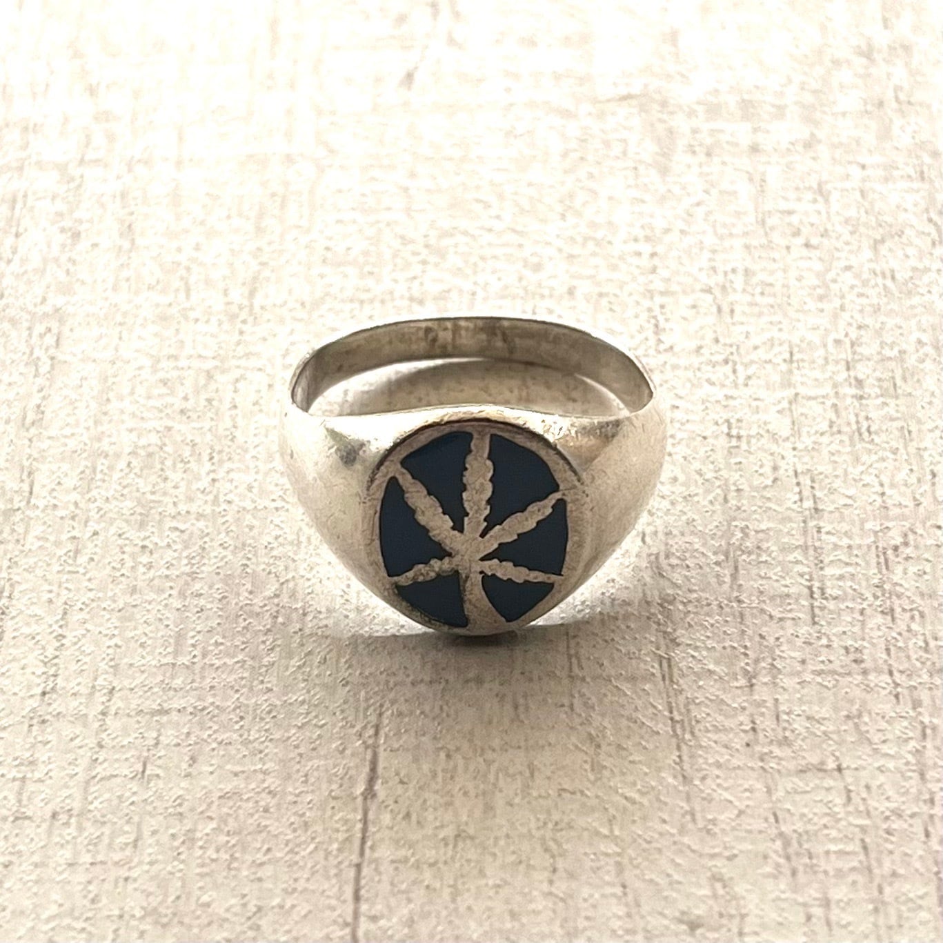 CANNABIS MOTIF TURQUOISE SIGNET RING -SILVER925- シグネットリング