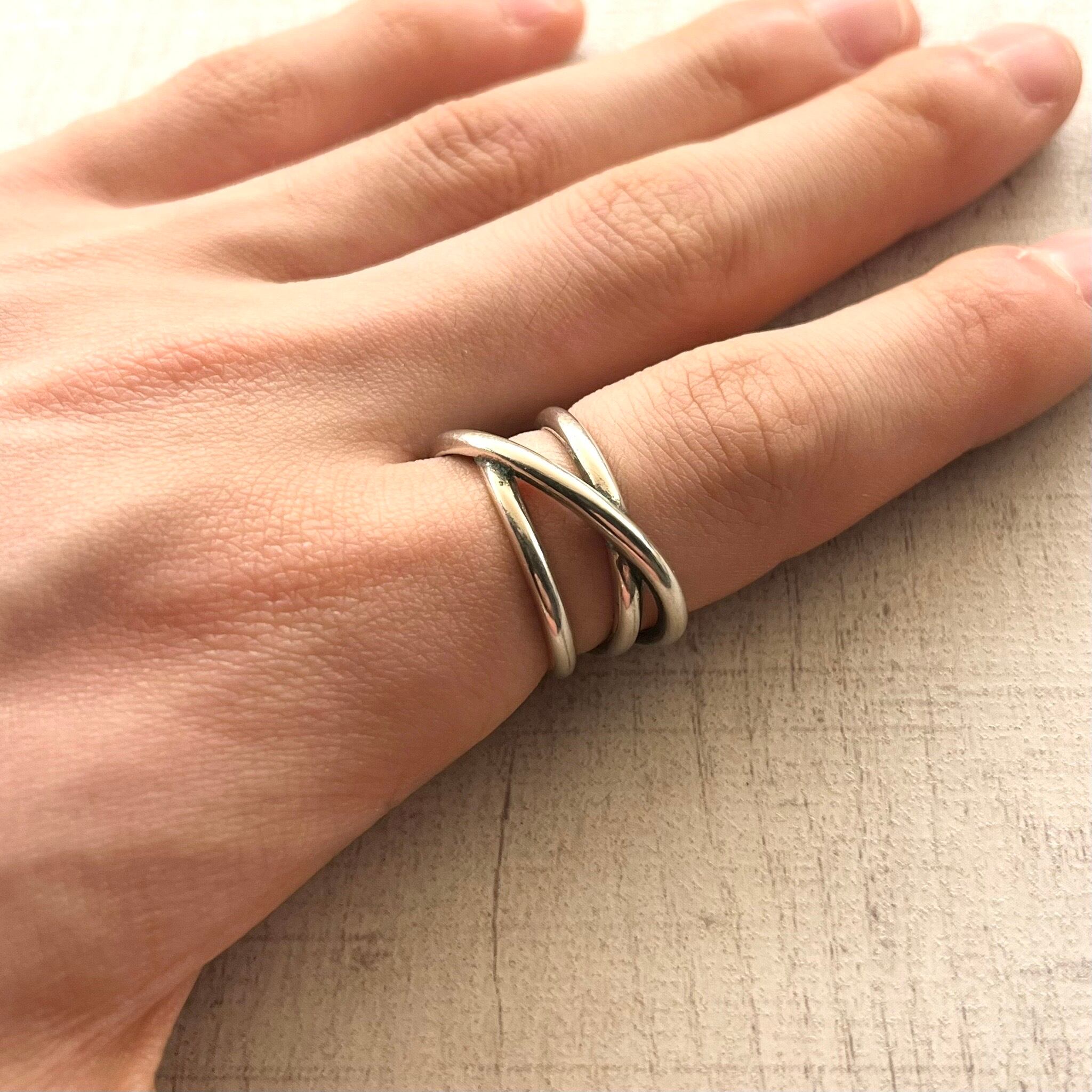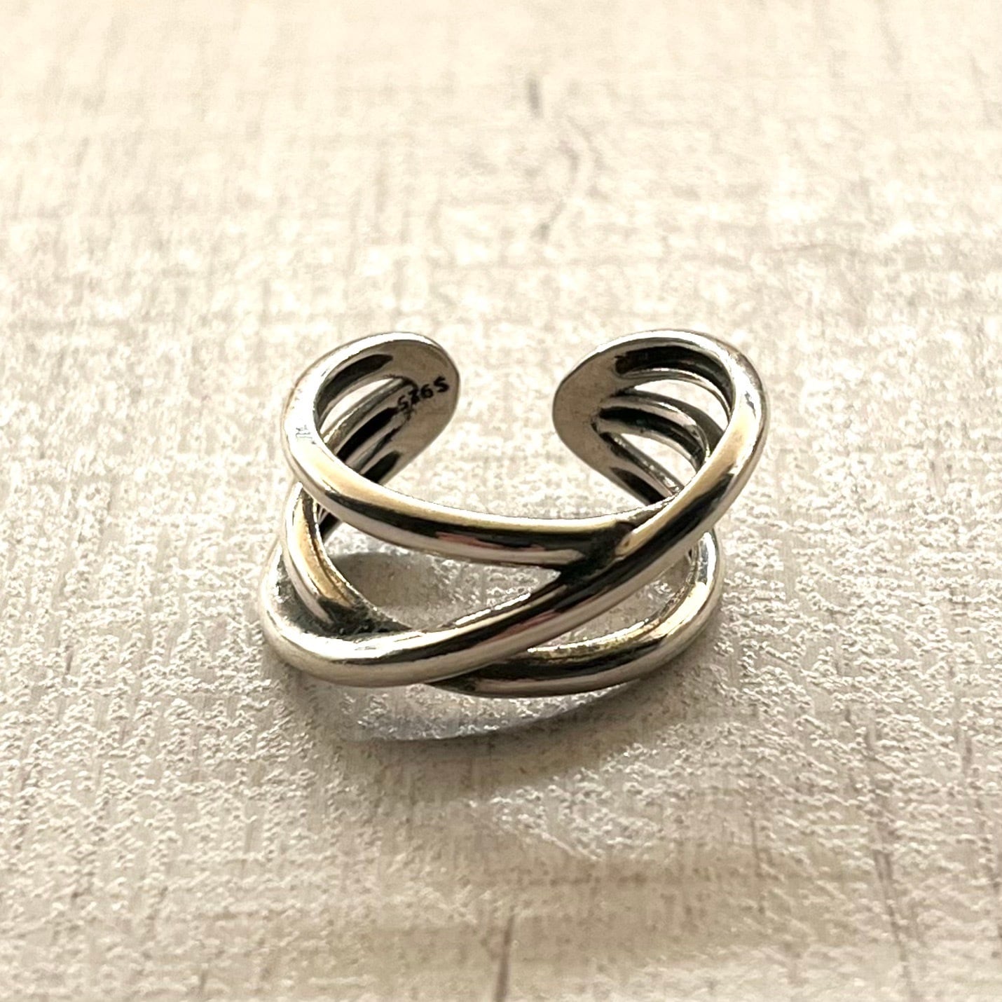 TRIPLE CROSSOVER DESIGN CUFF RING -SILVER925- カフリング
