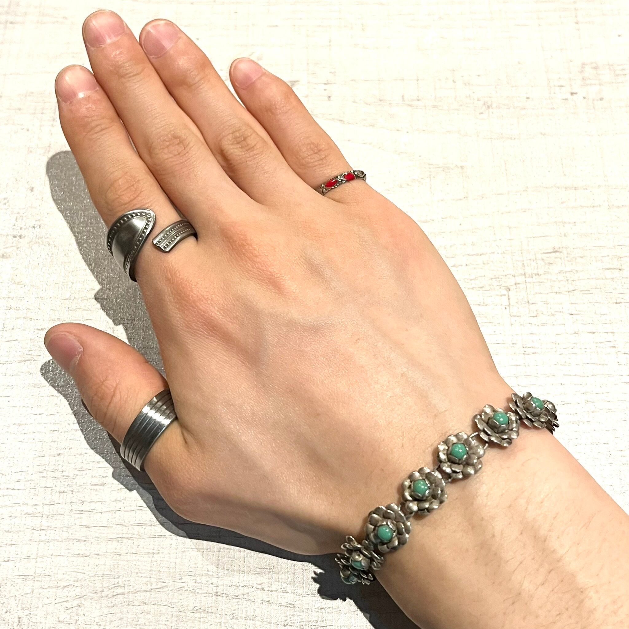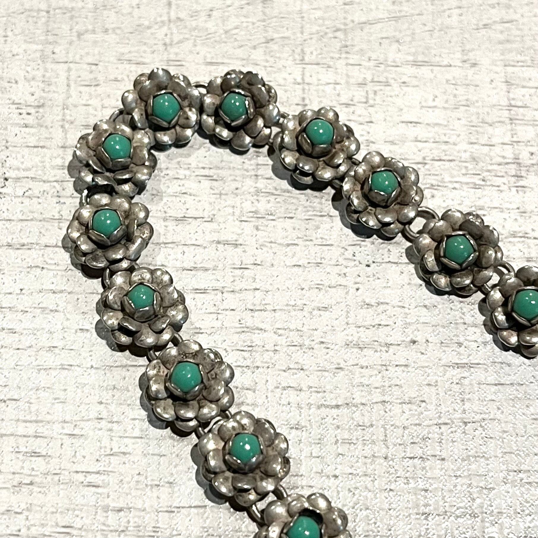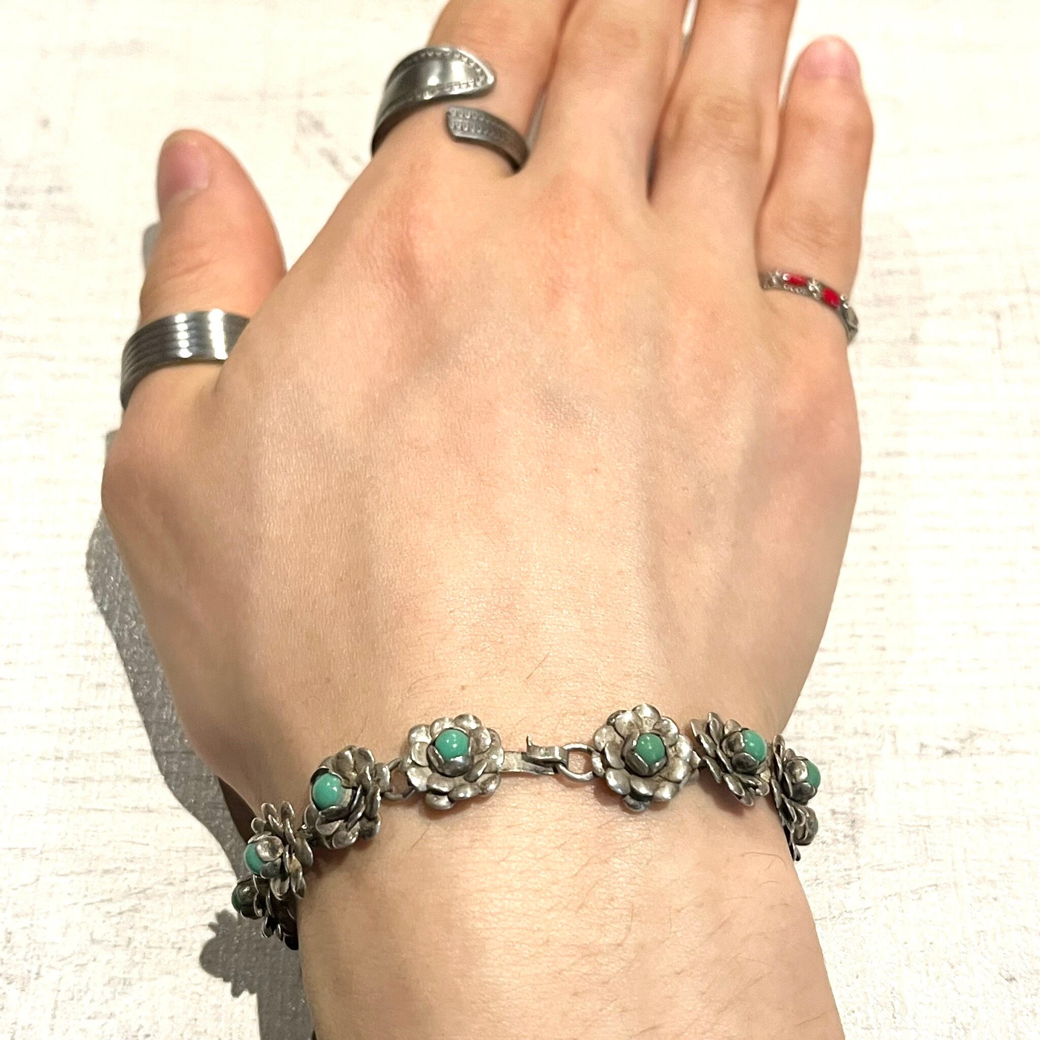 MEXICO MADE TURQUOISE STONE FLOWER MOTIF CHAIN BRACELET -SILVER925- ターコイズブレスレット