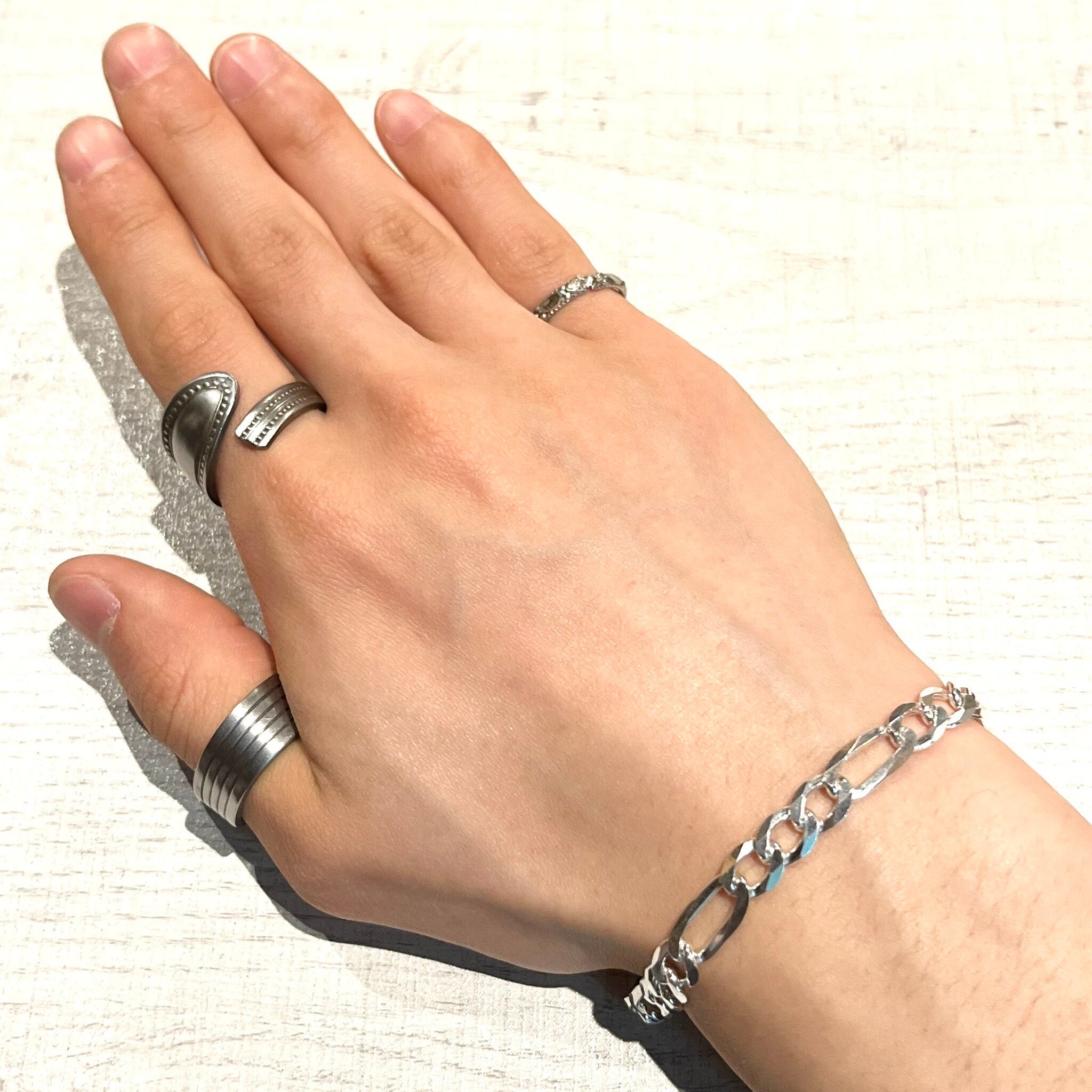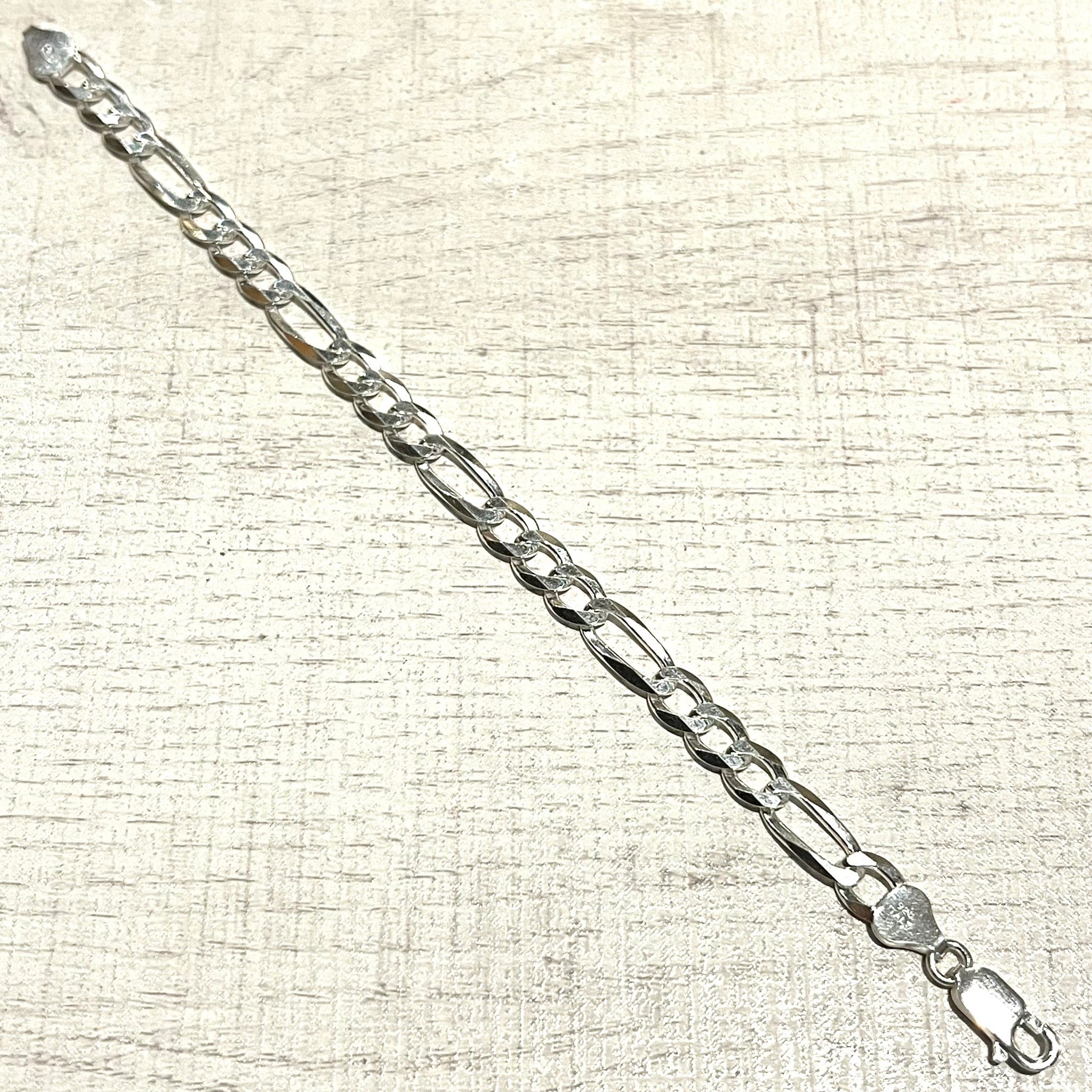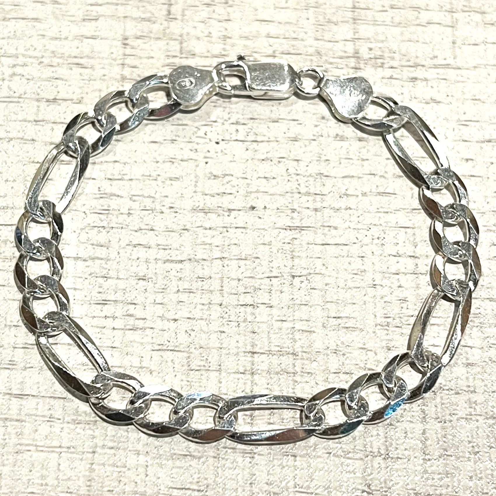 程よくボリューム感のある、クラシックなフィガロチェーンブレスレットです。シルバーの滑らかな質感が存在感を放つ、エレガントな逸品です。