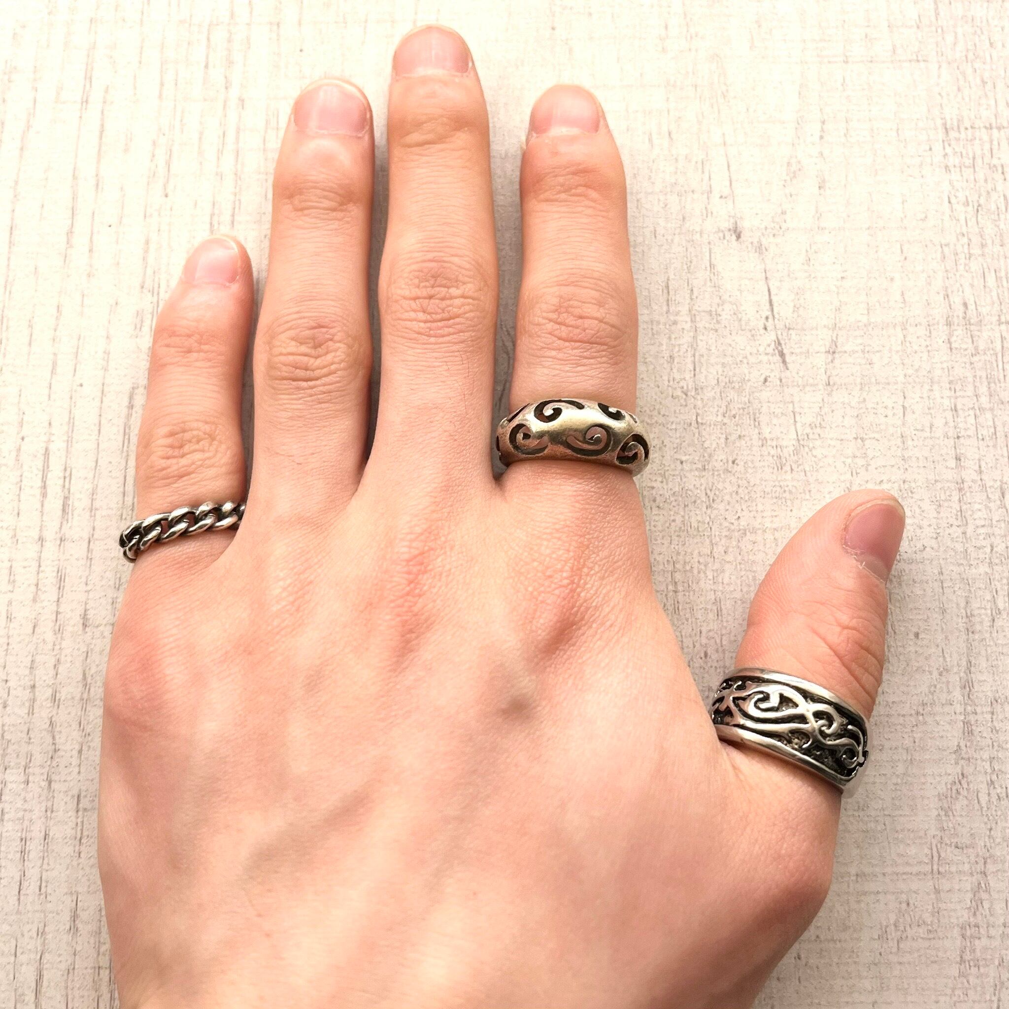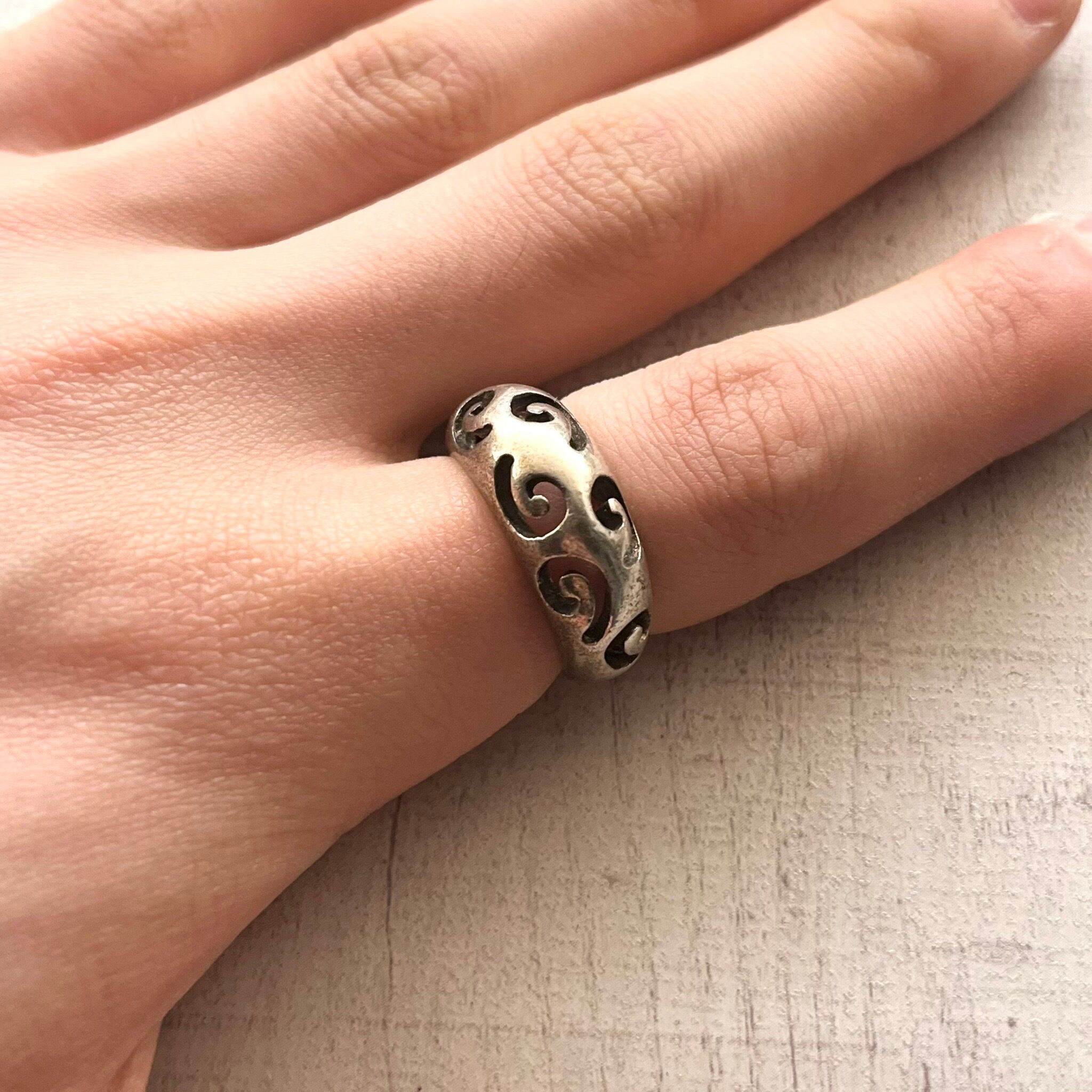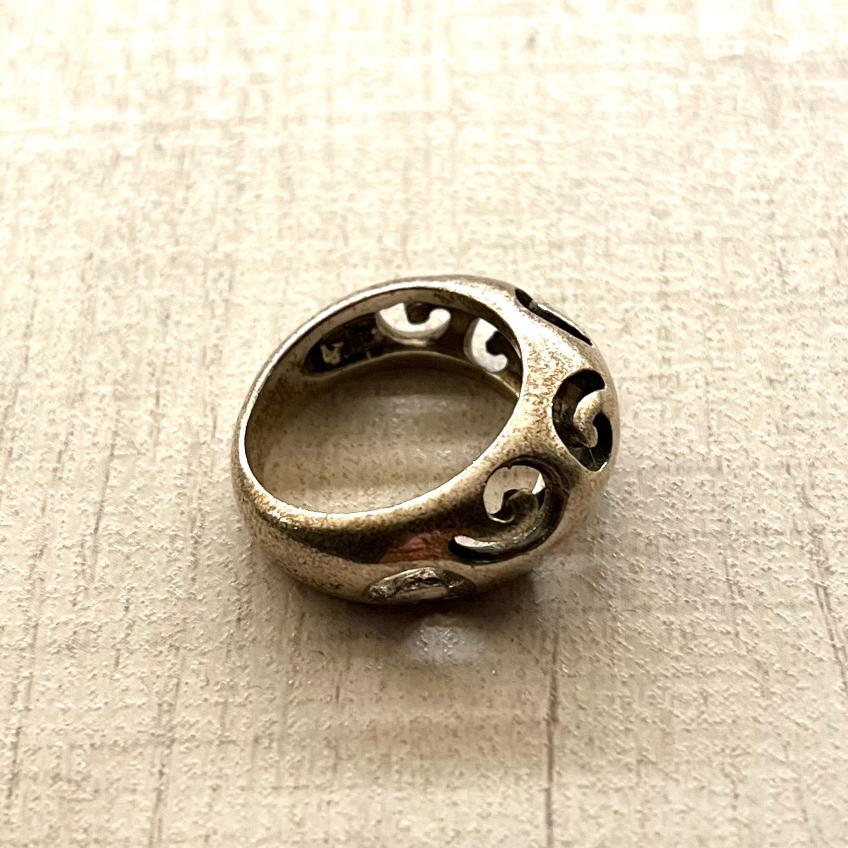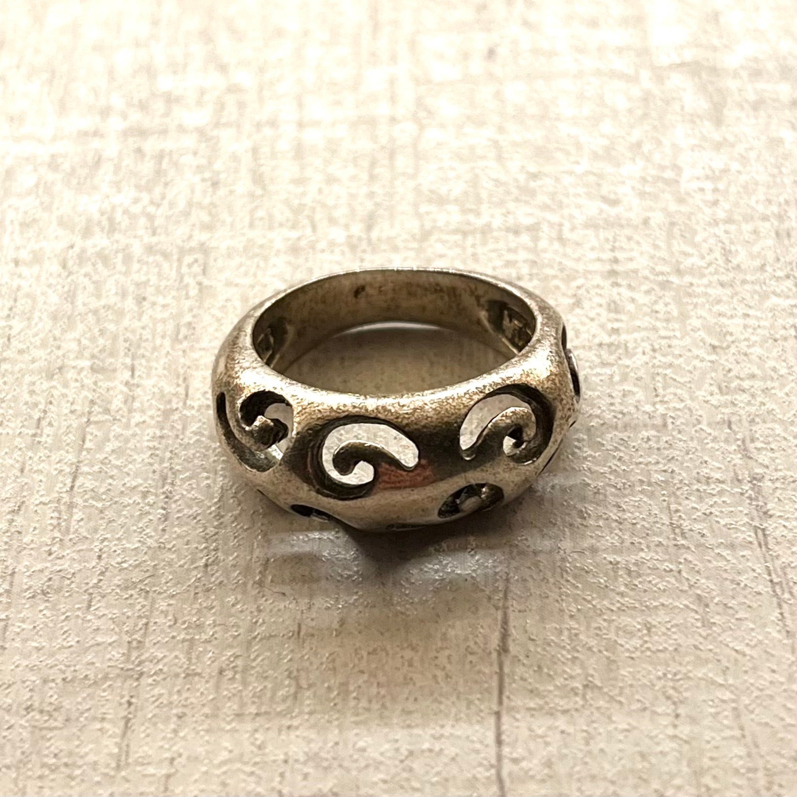 渦巻きのモチーフがアクセントの効いた、アラベスクリング。程よい褪色感があり、雰囲気抜群の逸品です。