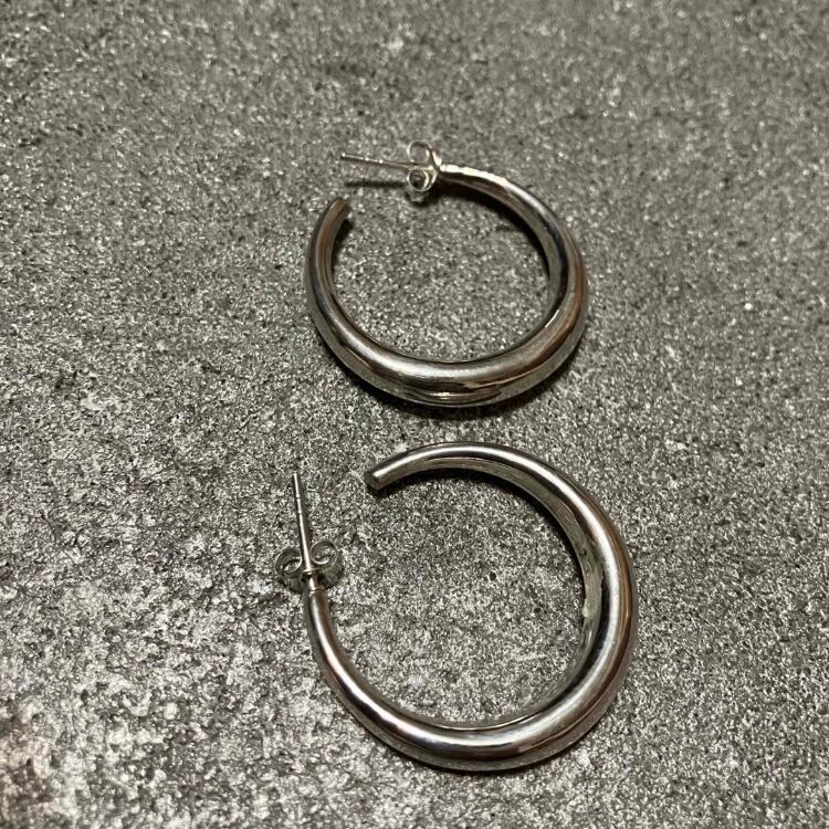 海外で買い付けたシルバー925ワイドフックピアスになります。