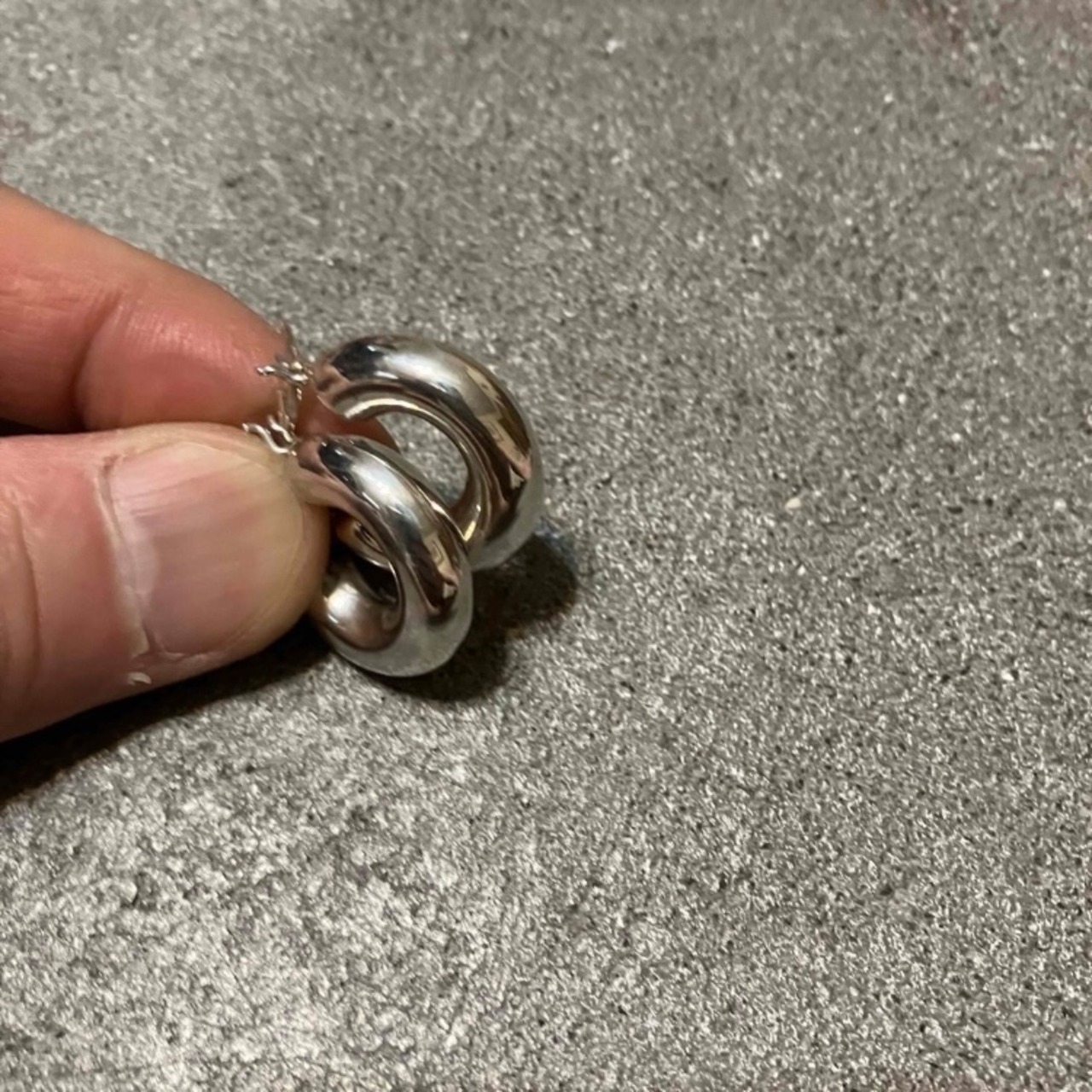 小ぶりですが太めのフープピアスです。