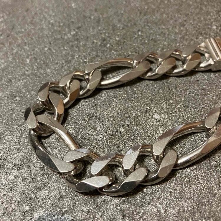 イタリア製の重厚感たっぷりのフィガロチェーンブレスレットです。
