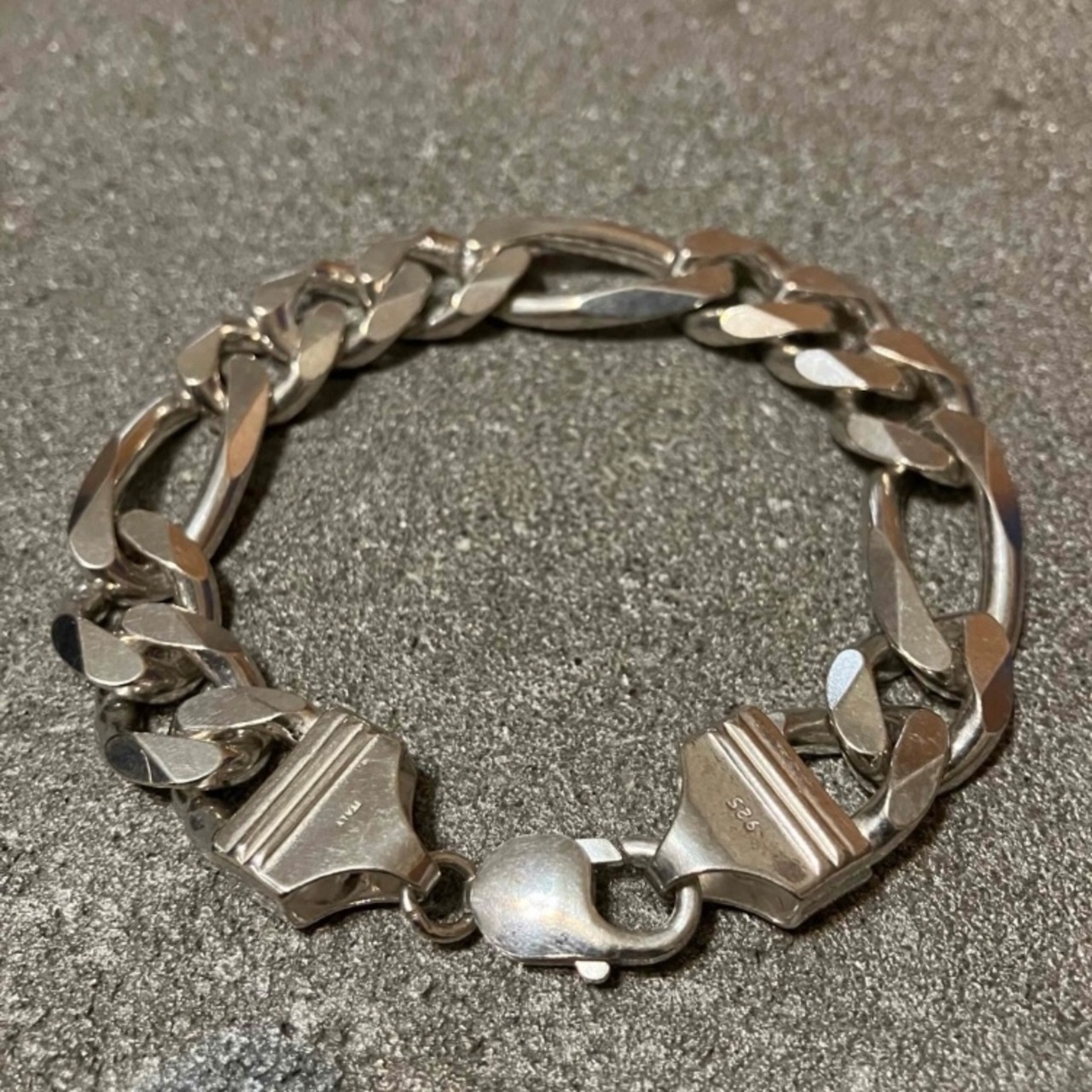 海外で買い付けたのですが、イタリア製の極太フィガロチェーンブレスレットになります。