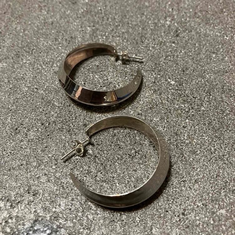 海外で買い付けたシルバー925ワイドフープデザインピアスになります。
