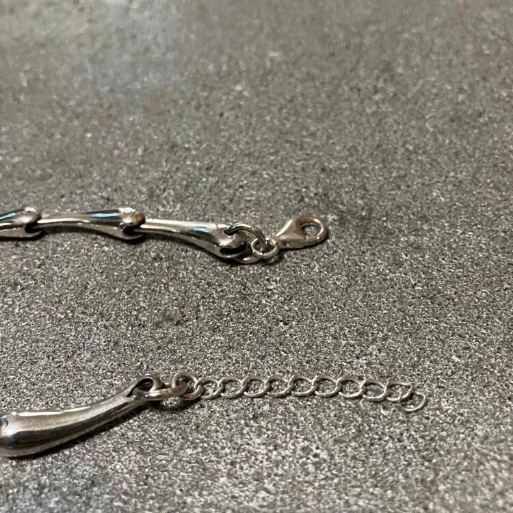 なかなか珍しいティアドロップのようなデザインのチェーンを採用したブレスレットです。