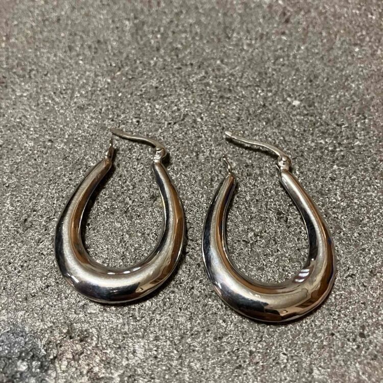 やや大振りのオーバル型フープピアスです。(両耳)