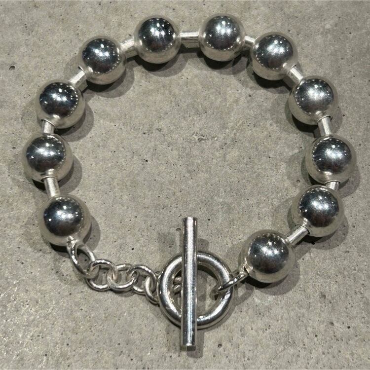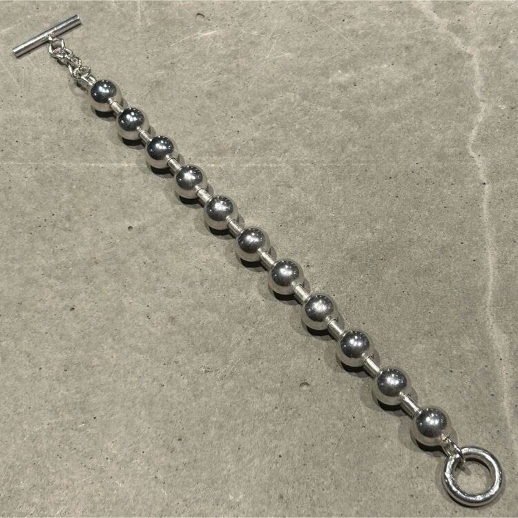 一粒一粒大きなシルバーボールがデザインされたチェーンブレスレットです。