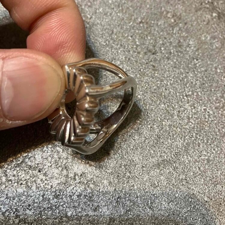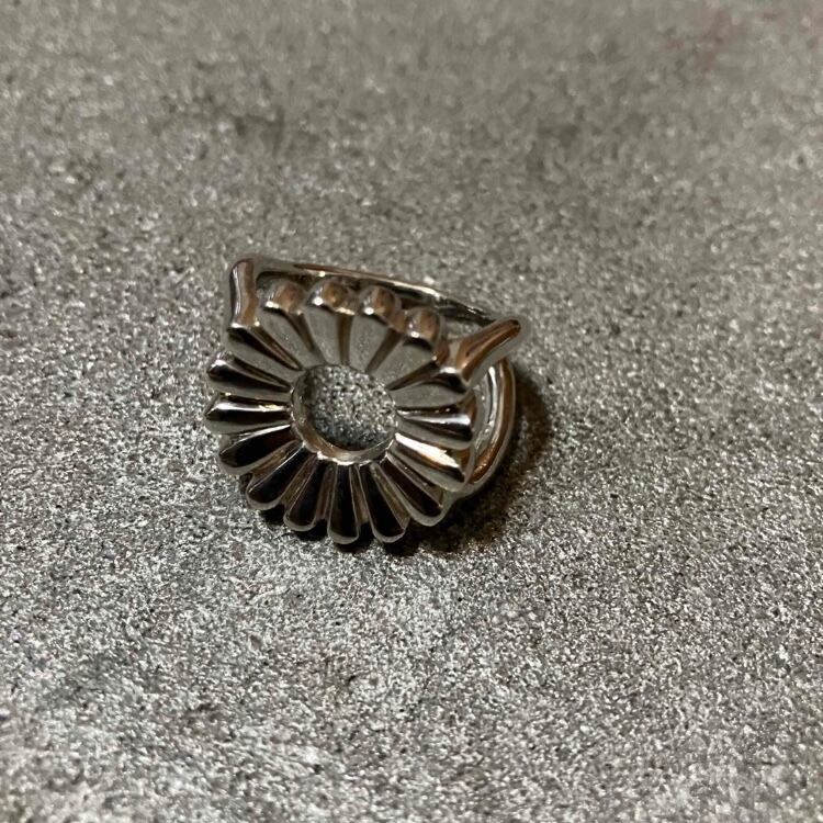 フラワーのようなデザインが施された大振りなリングです。