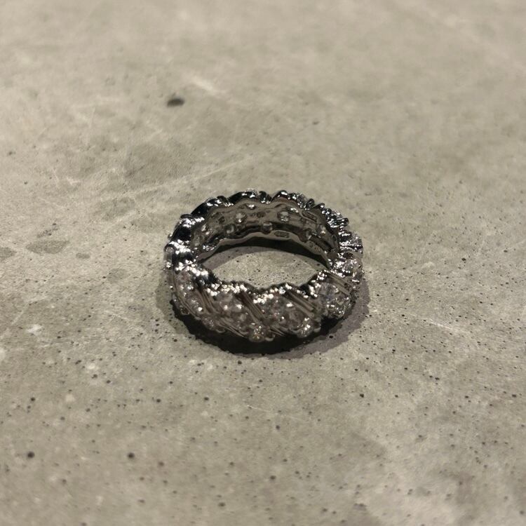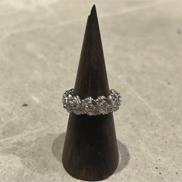 全体的にクリスタルがデザインされたシルバーリングになります。