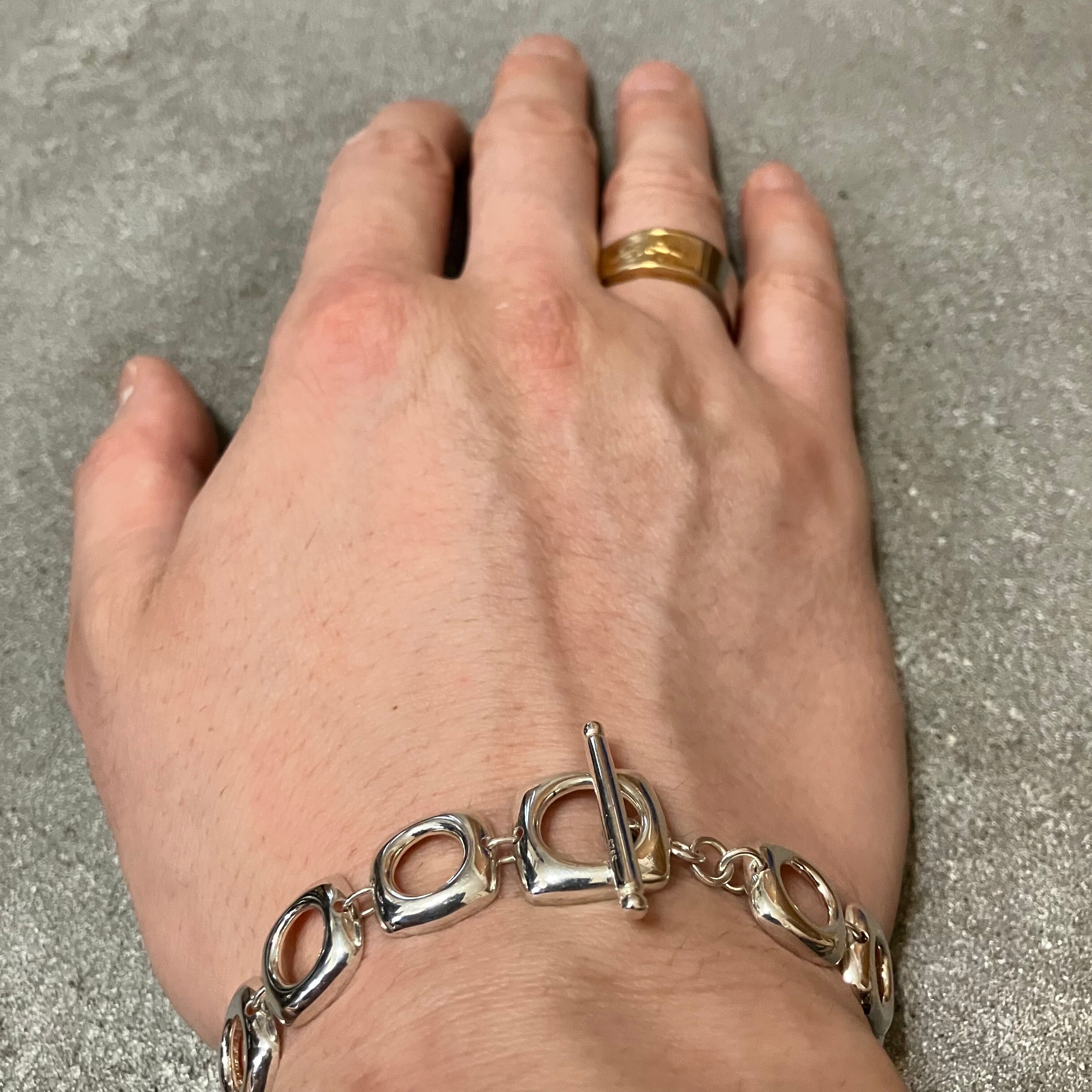 海外で買い付けたスクエアフープデザインのブレスレットになります。