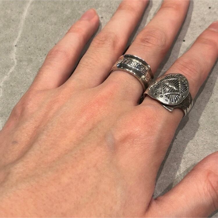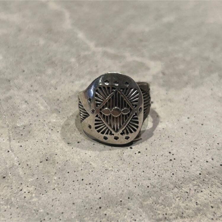 海外で買い付けたスタンプワークデザインのシルバーリングです。