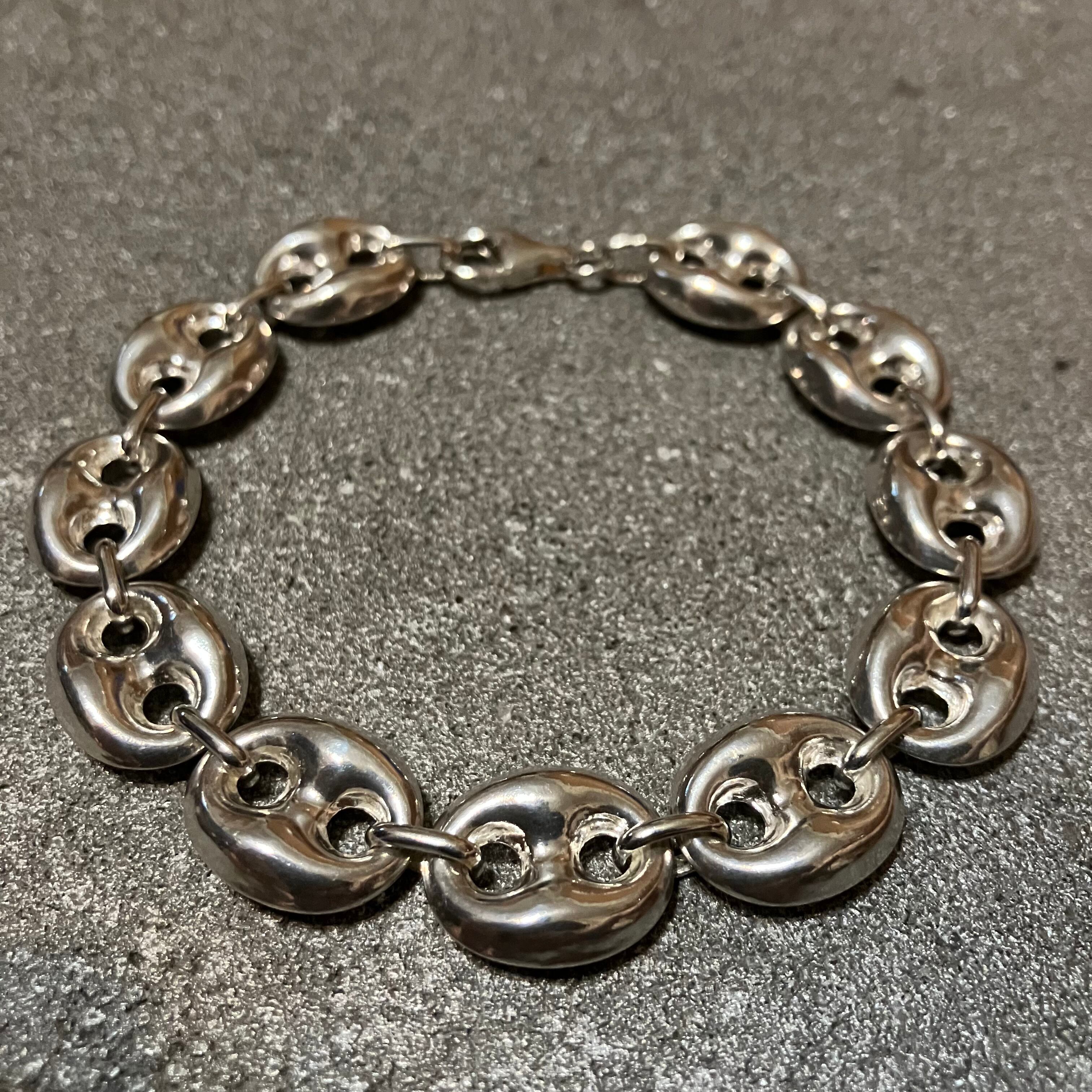 大きめの豚鼻チェーンを用いたシルバーブレスレットです。