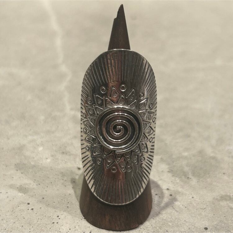 海外で買い付けたビッグシールドデザインシルバーリングです。