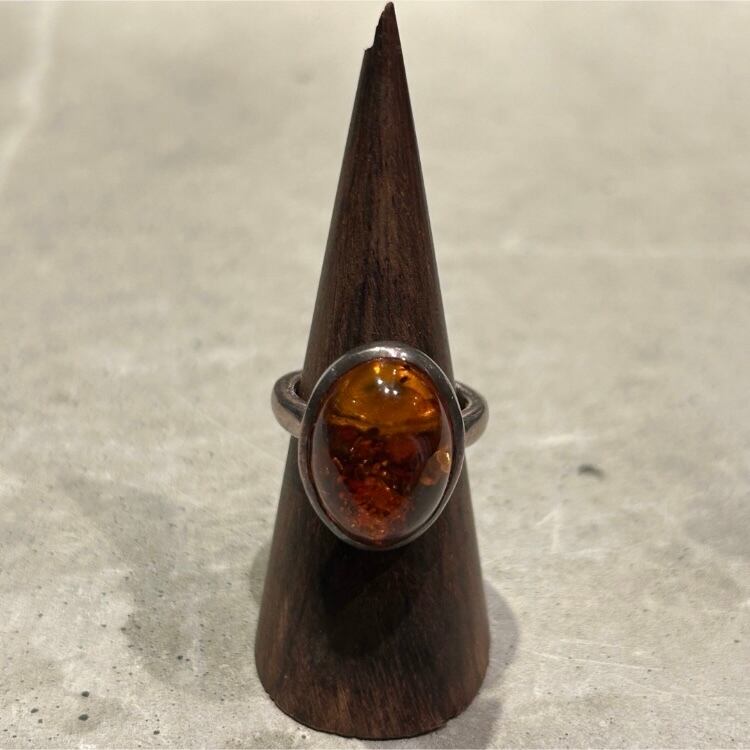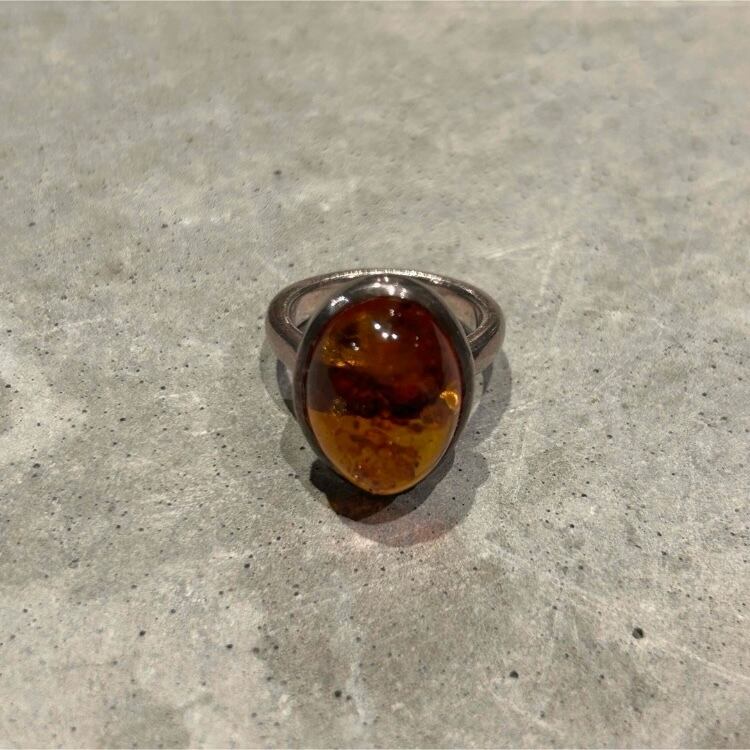 大きな琥珀がデザインされたシルバーリングです。