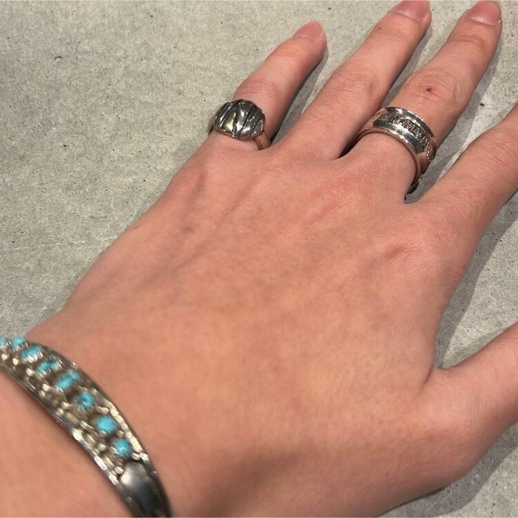 海外で買い付けた総彫り込みサークルデザインシルバーリングです。