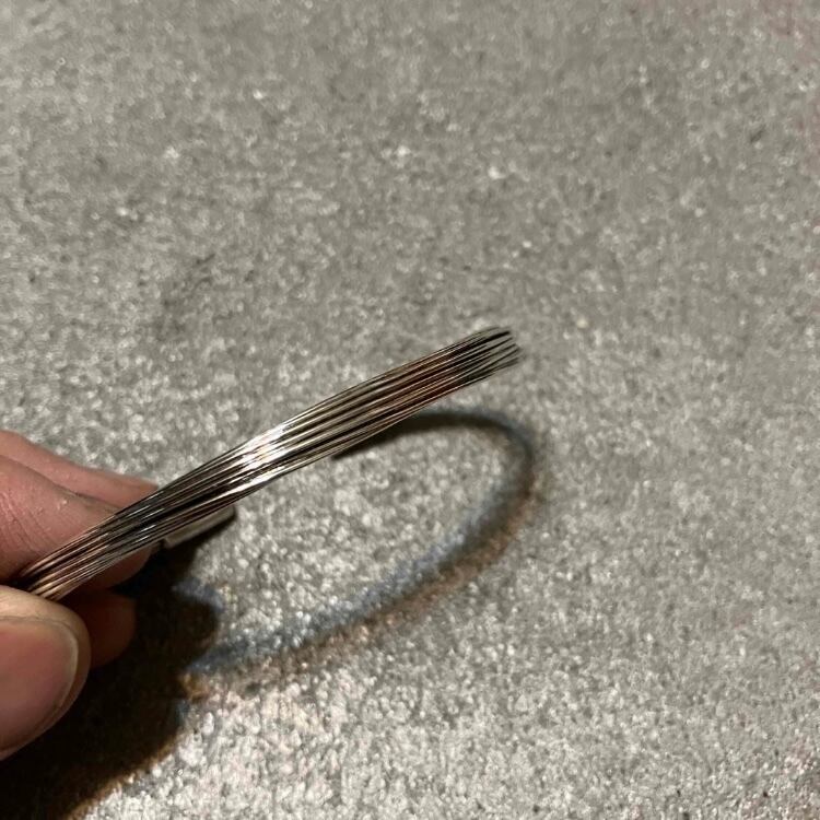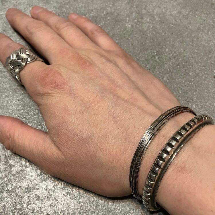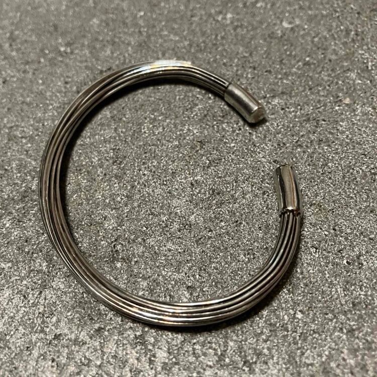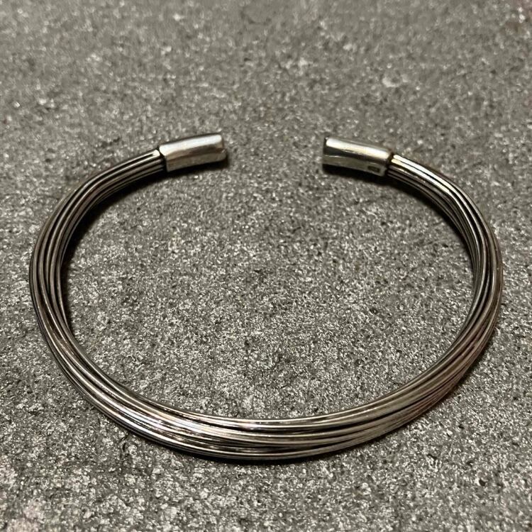 たくさんのワイヤーを束ねたスタイリッシュなデザインのシルバーバングルです。