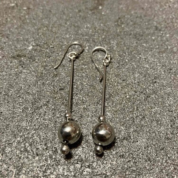 シルバーのドロップパール(移動させられます)がデザインされた、オシャレなピアスです。(両耳)