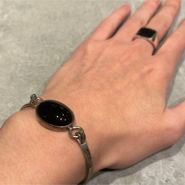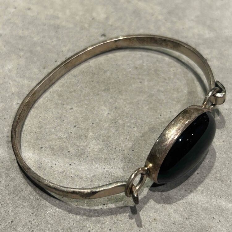 海外で買い付けたメキシカンジュエリーのシルバー925、オニキスデザインバングルになります。