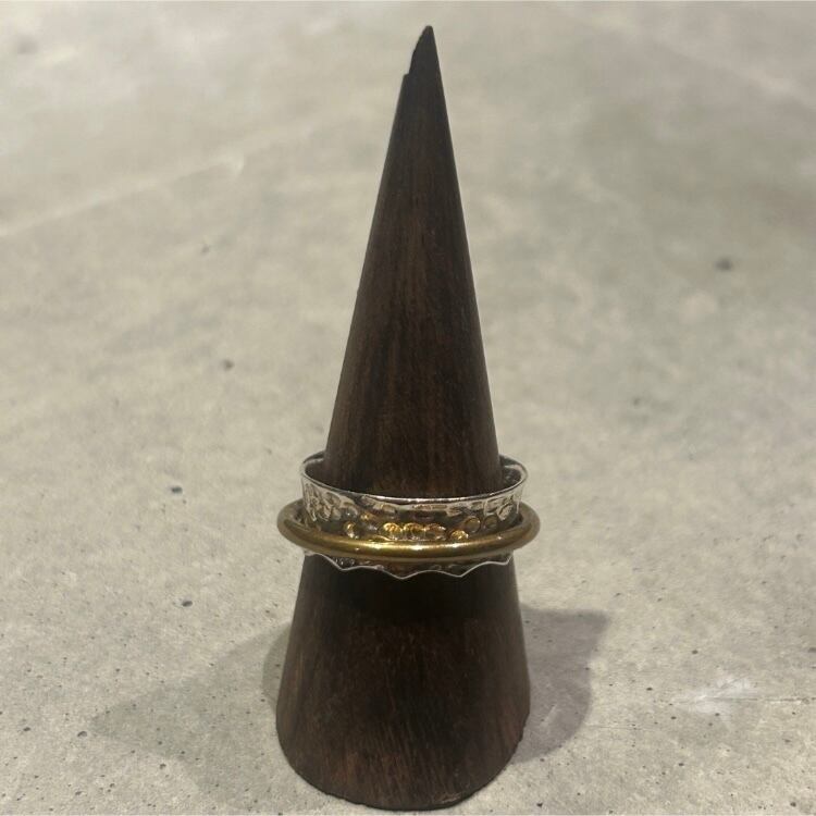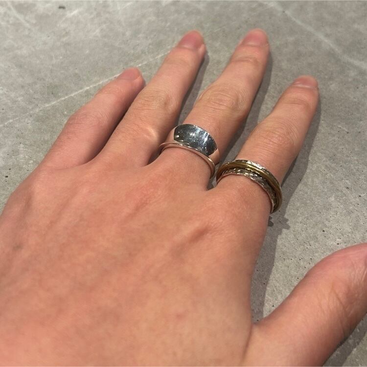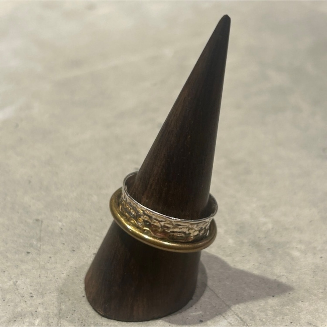 シルバーとゴールドのリングが重なったデザインリングになります。