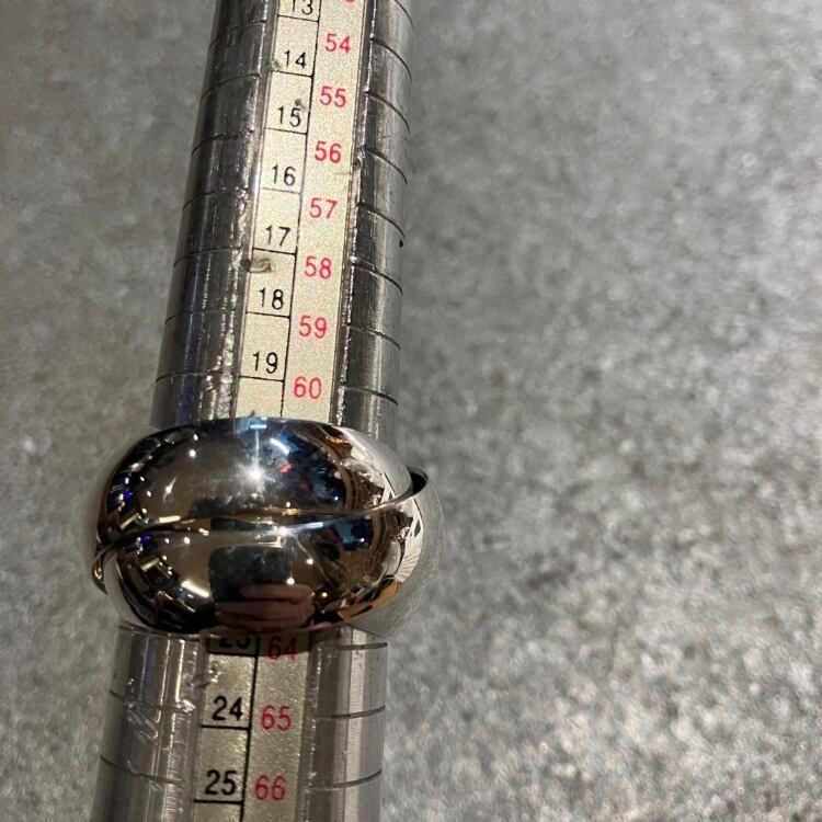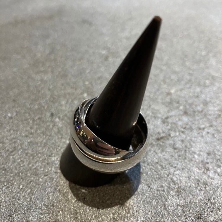 シンプルなシルバーワイドリングが3つ重ねられた珍しいデザインです。