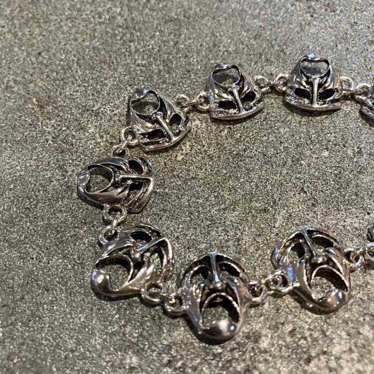 少し不気味な表情をしている人面が並んだ珍しいブレスレットです。
