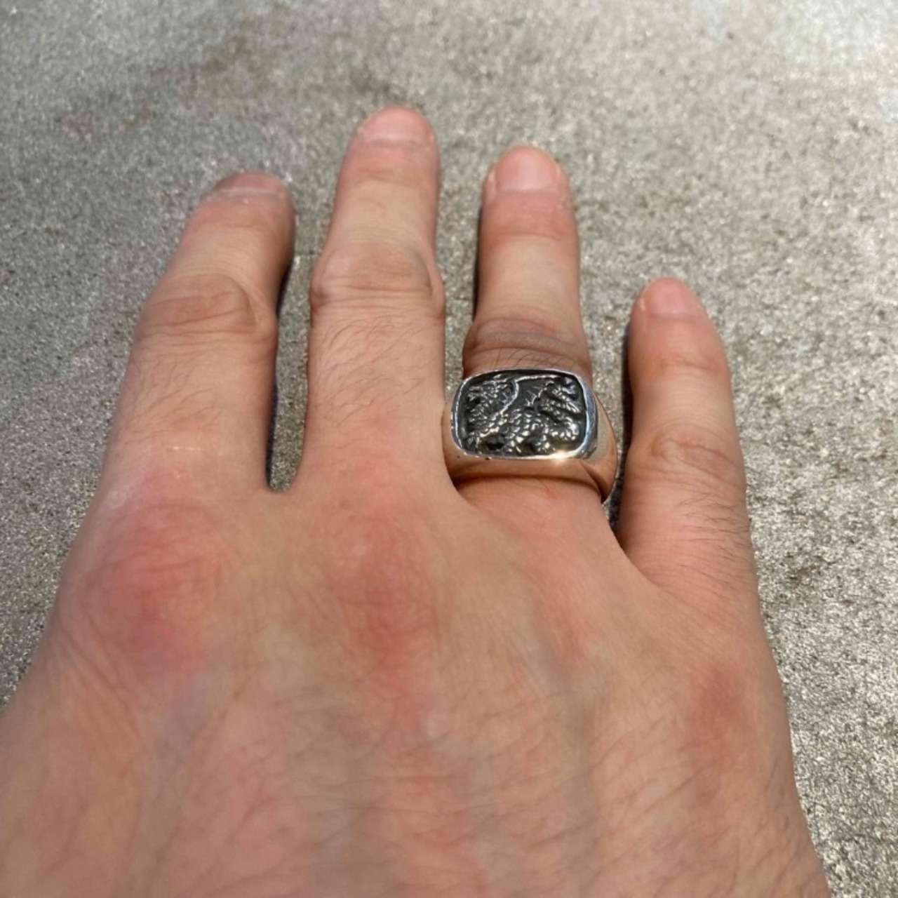 なかなか重量のあるドラゴンが刻印されたリングです。