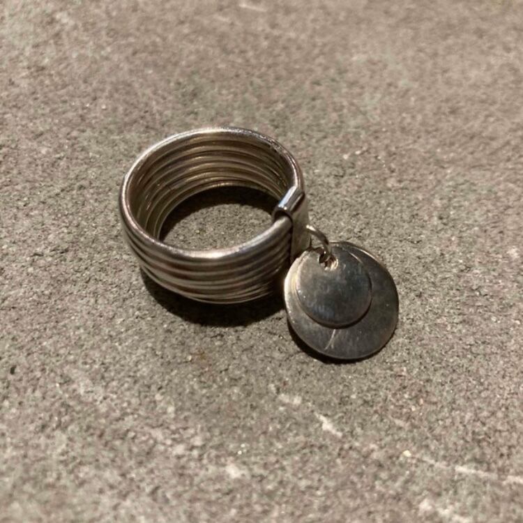 7連リングにチャームが付いた、なかなかお目にかかれないデザインです。