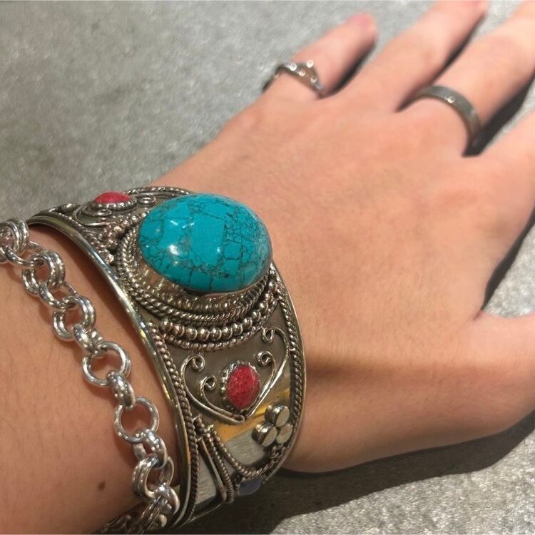 海外で買い付けたターコイズデザインバングルになります。