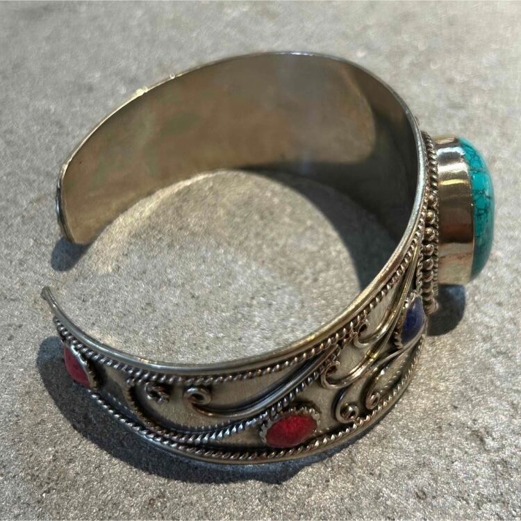 BRASS BIG TURQUOISE DESIGN BANGLE/BRACELET /シルバー/ブレスレット/バングル