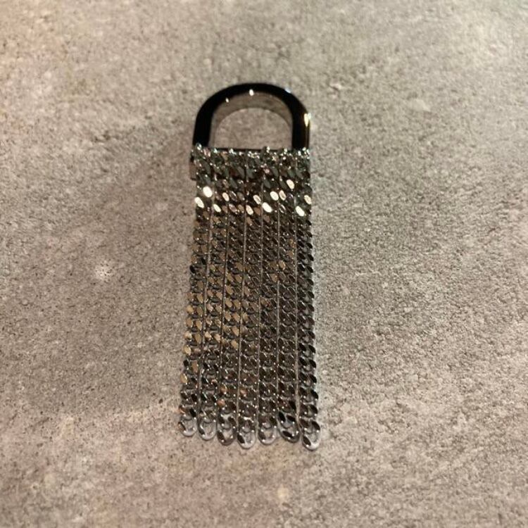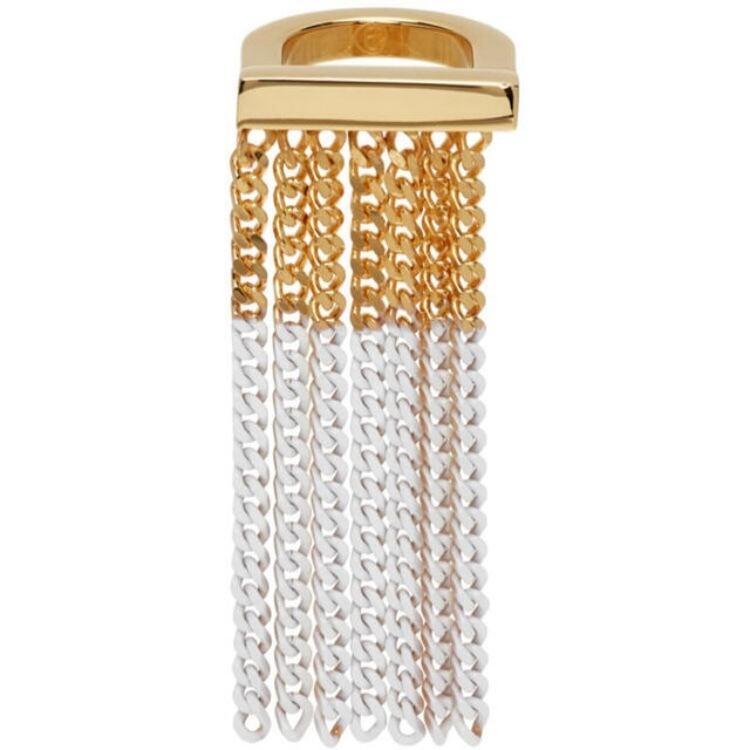 プラスのリングにチェーンをフリンジ状に施した大胆なデザイン。