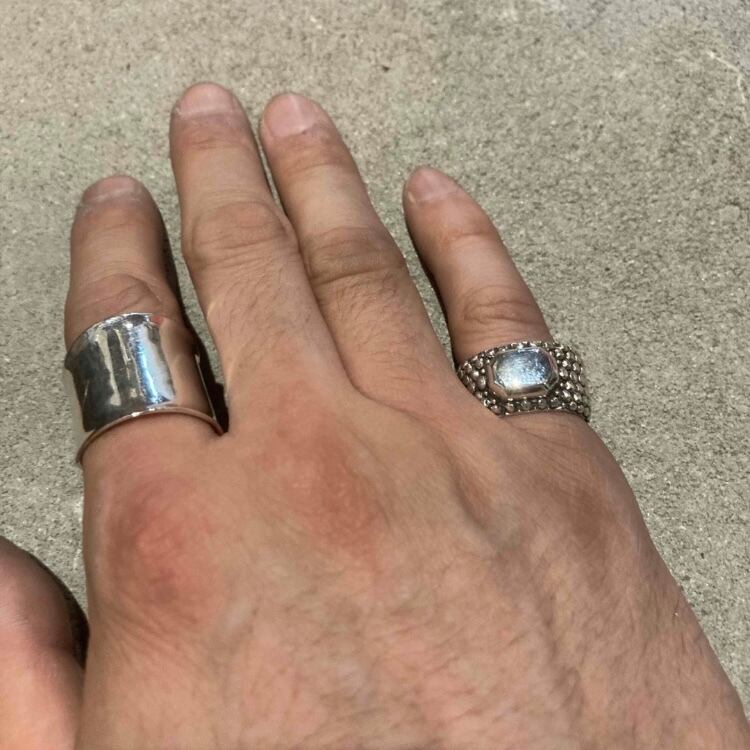 海外で買い付けた凹凸デザインのシルバーリングです。