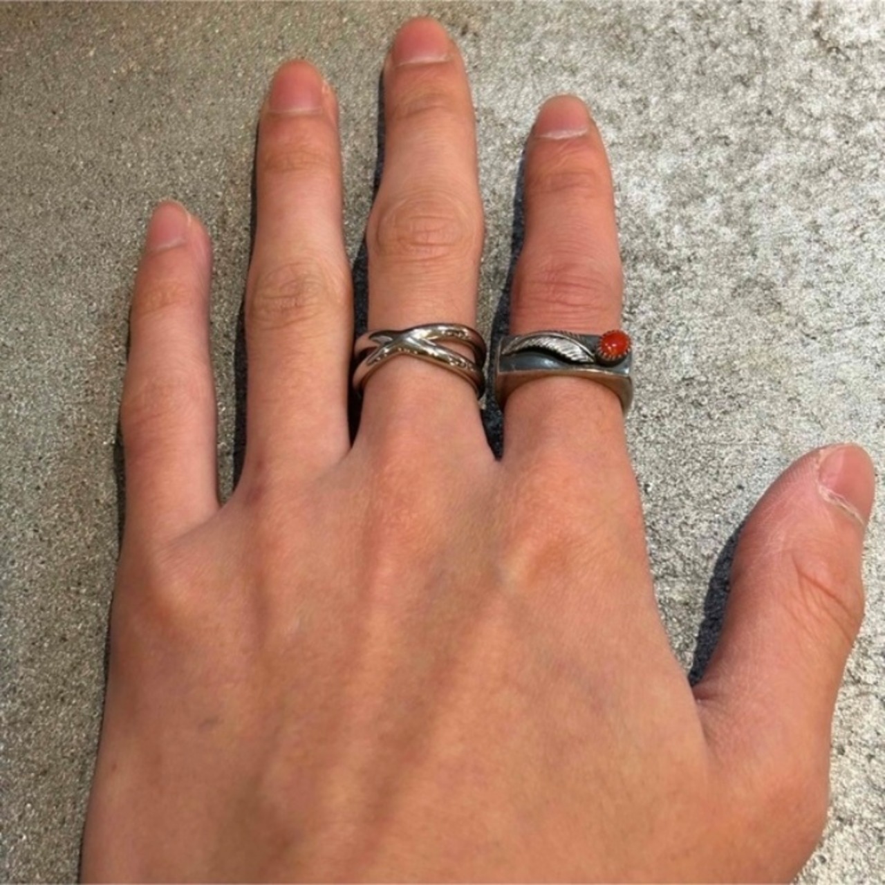 海外で買い付けたコーラルとフェザーのシルバーリングです。