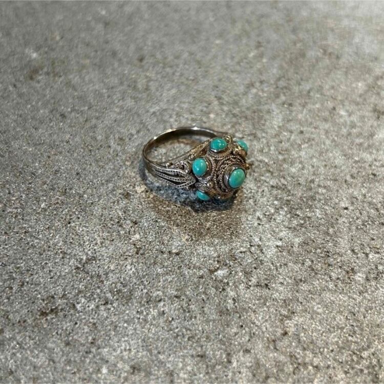 海外で買い付けたターコイズ&ボールデザインのシルバーリングです。