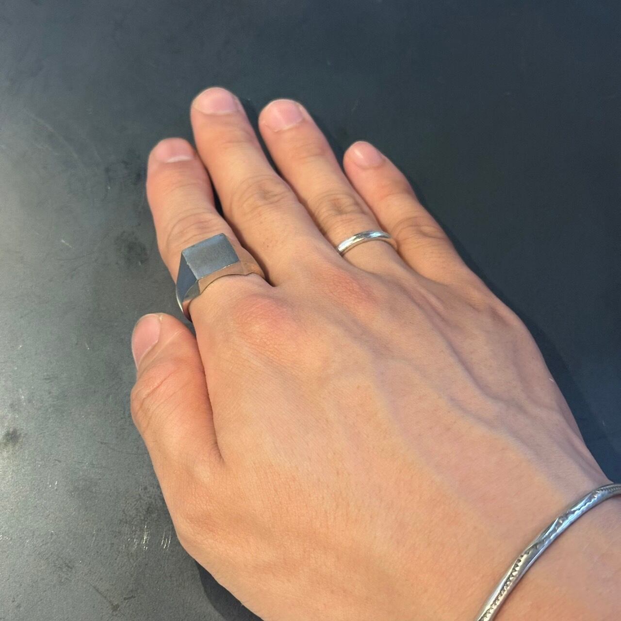 海外で買い付けたスクエアデザインのシルバーリングです。