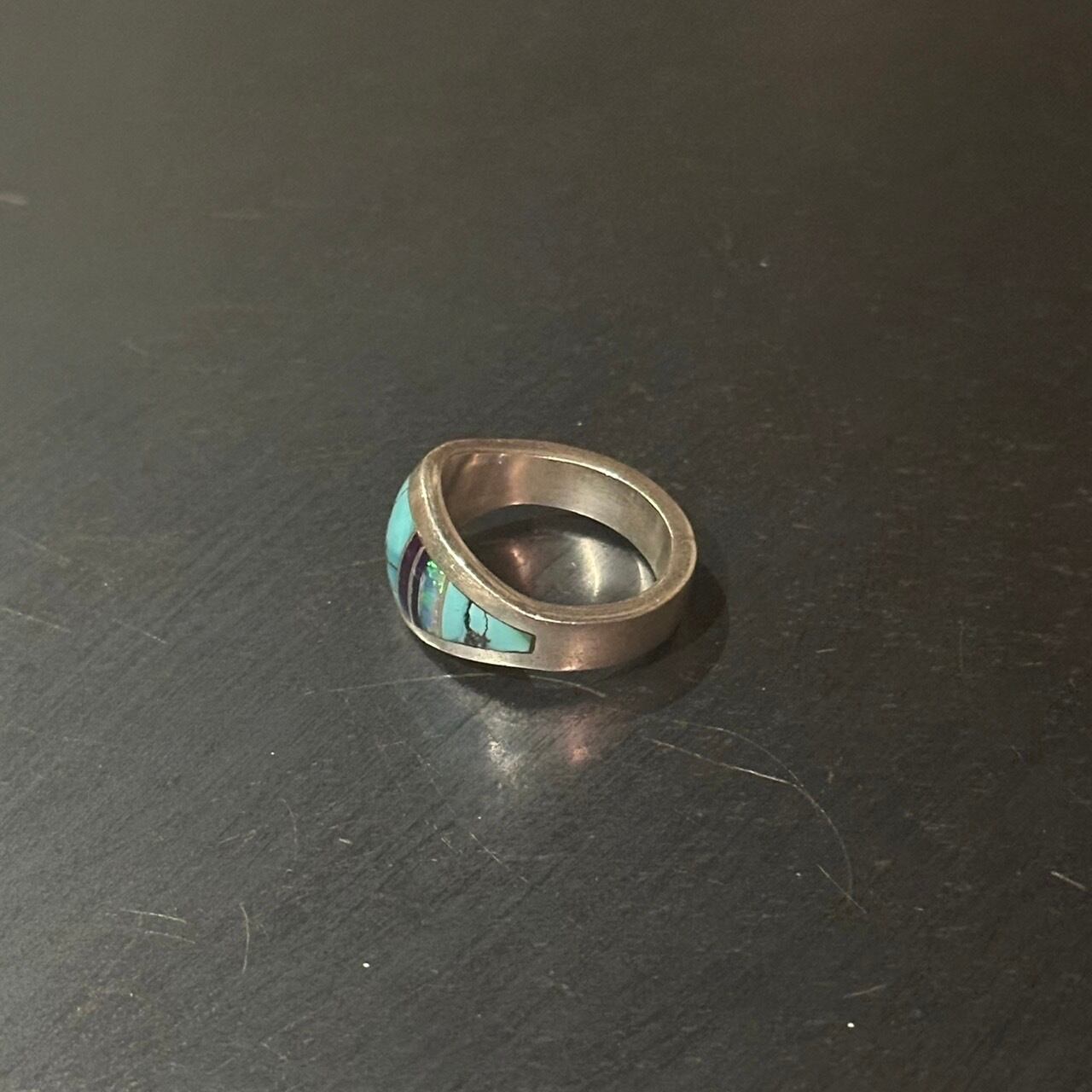 海外で買い付けたターコイズとラメが入ったデザインのシルバーリングです。