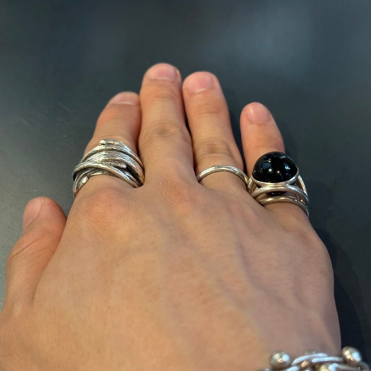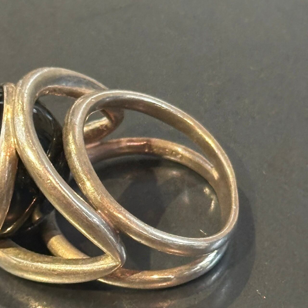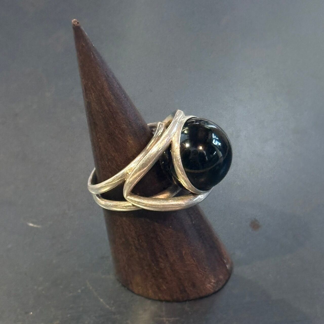 海外で買い付けたオニキスデザインのシルバーリングです。