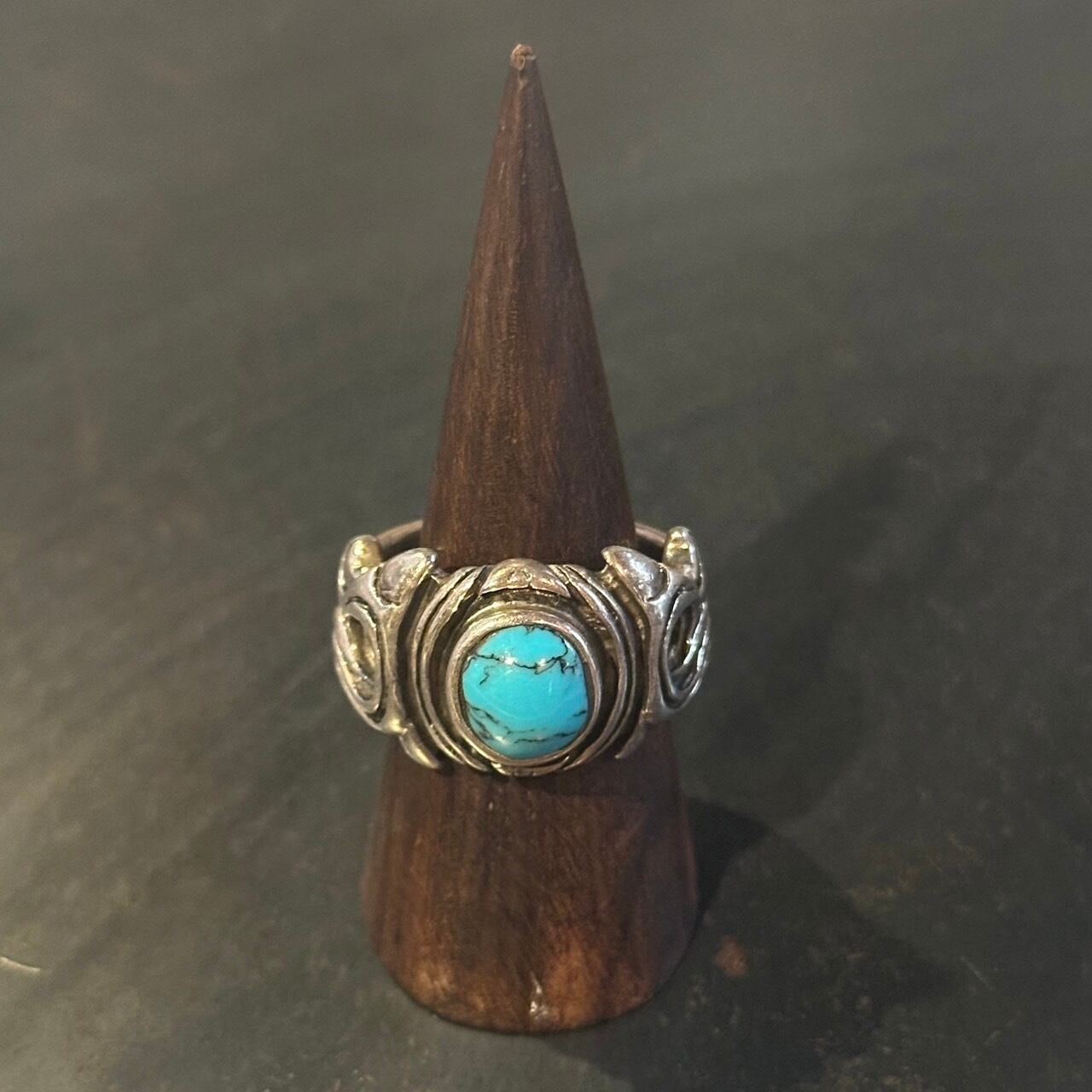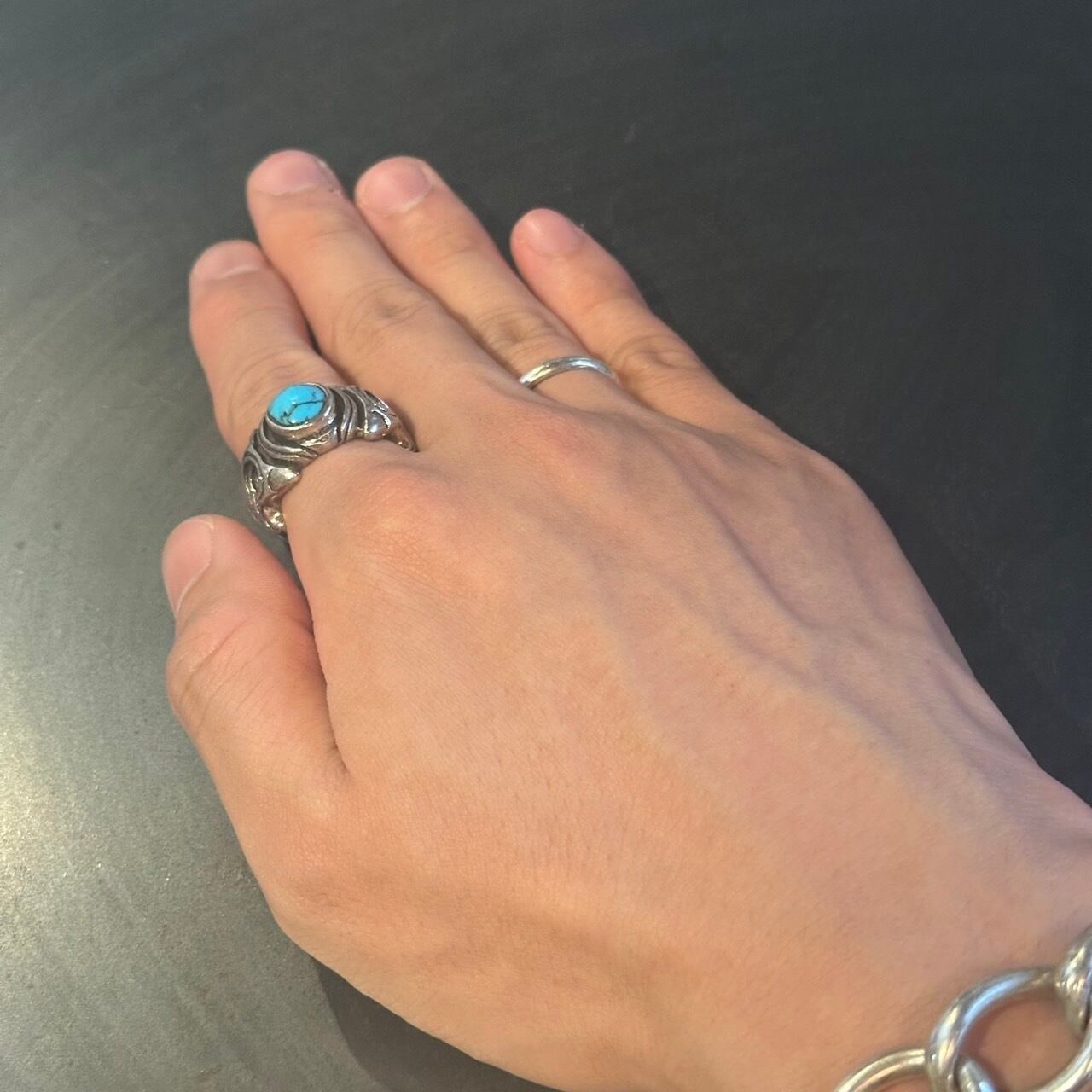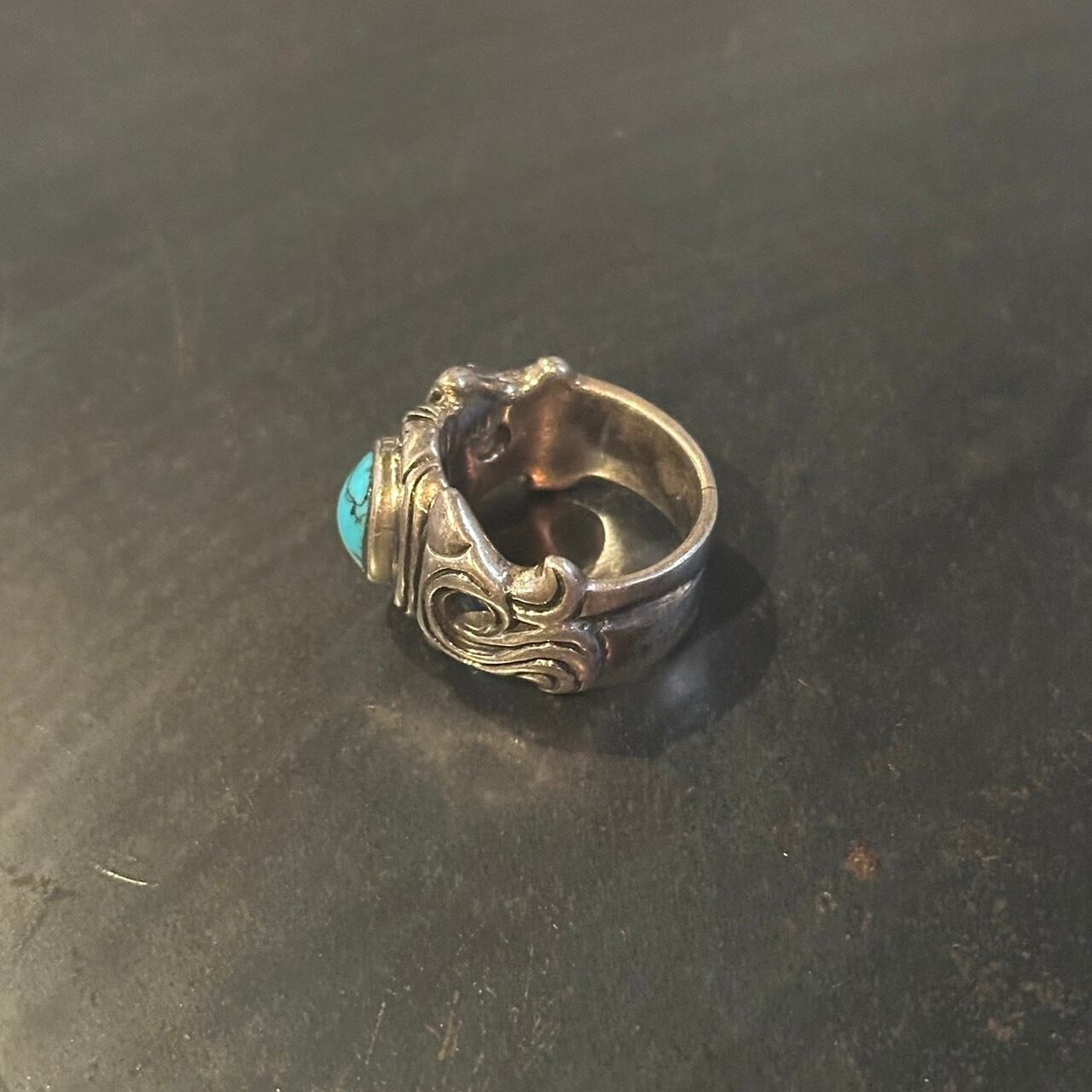 海外で買い付けたターコイズデザインのシルバーリングです。