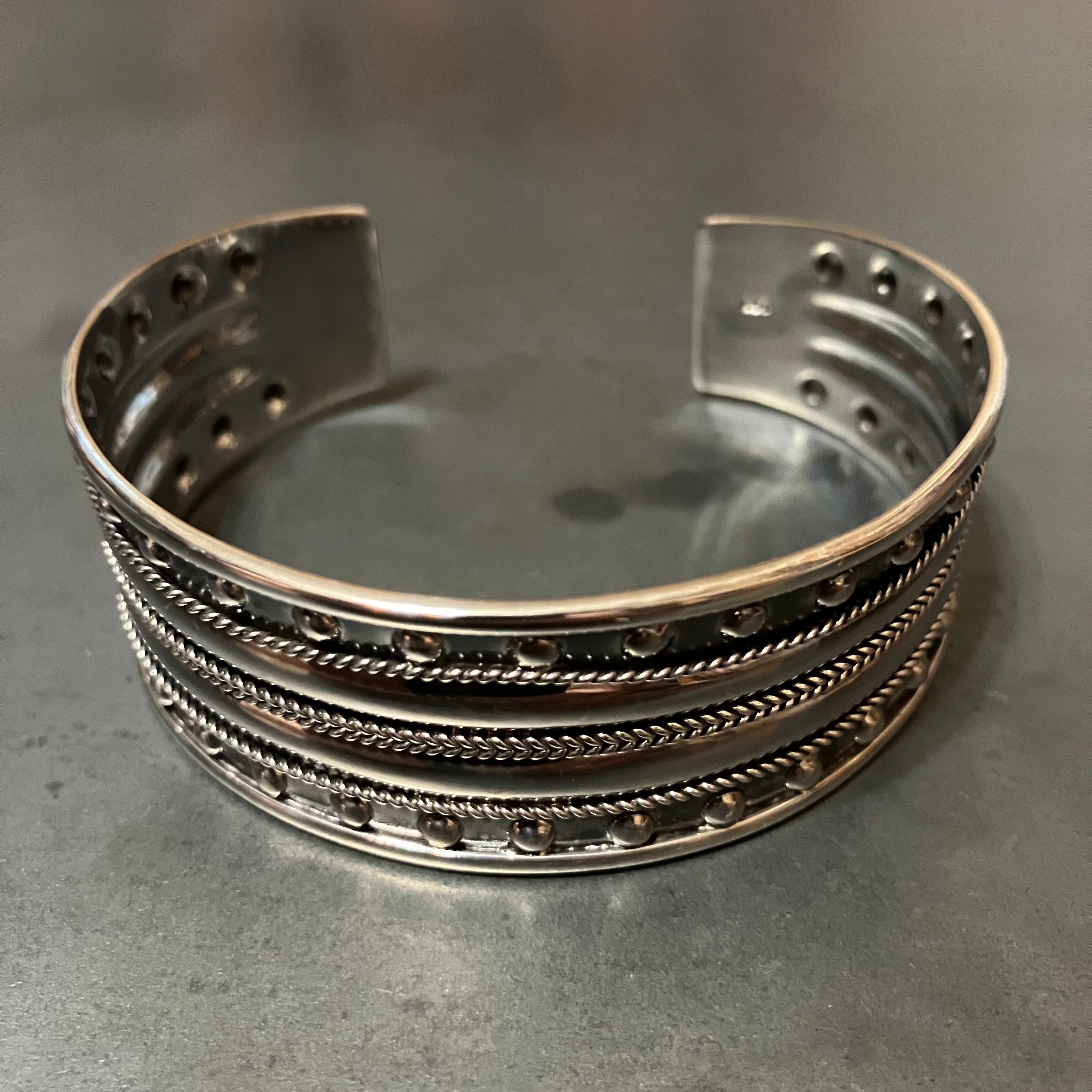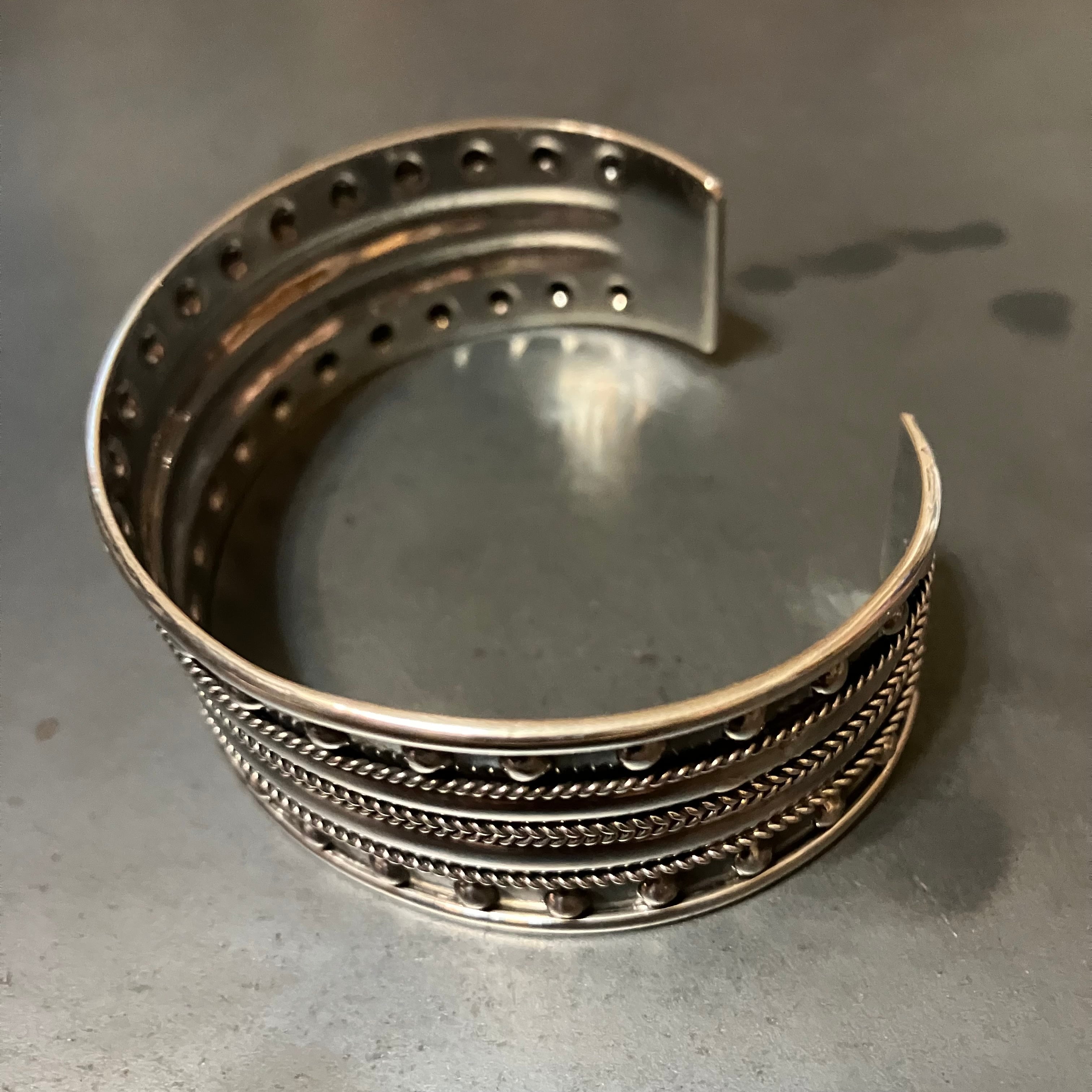 海外で買い付けたシルバーワイドバングルです。
