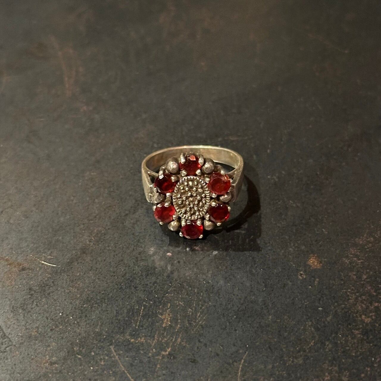 SILVER925 RED STONE SUNFLOWER DESIGN RING/シルバー/リング