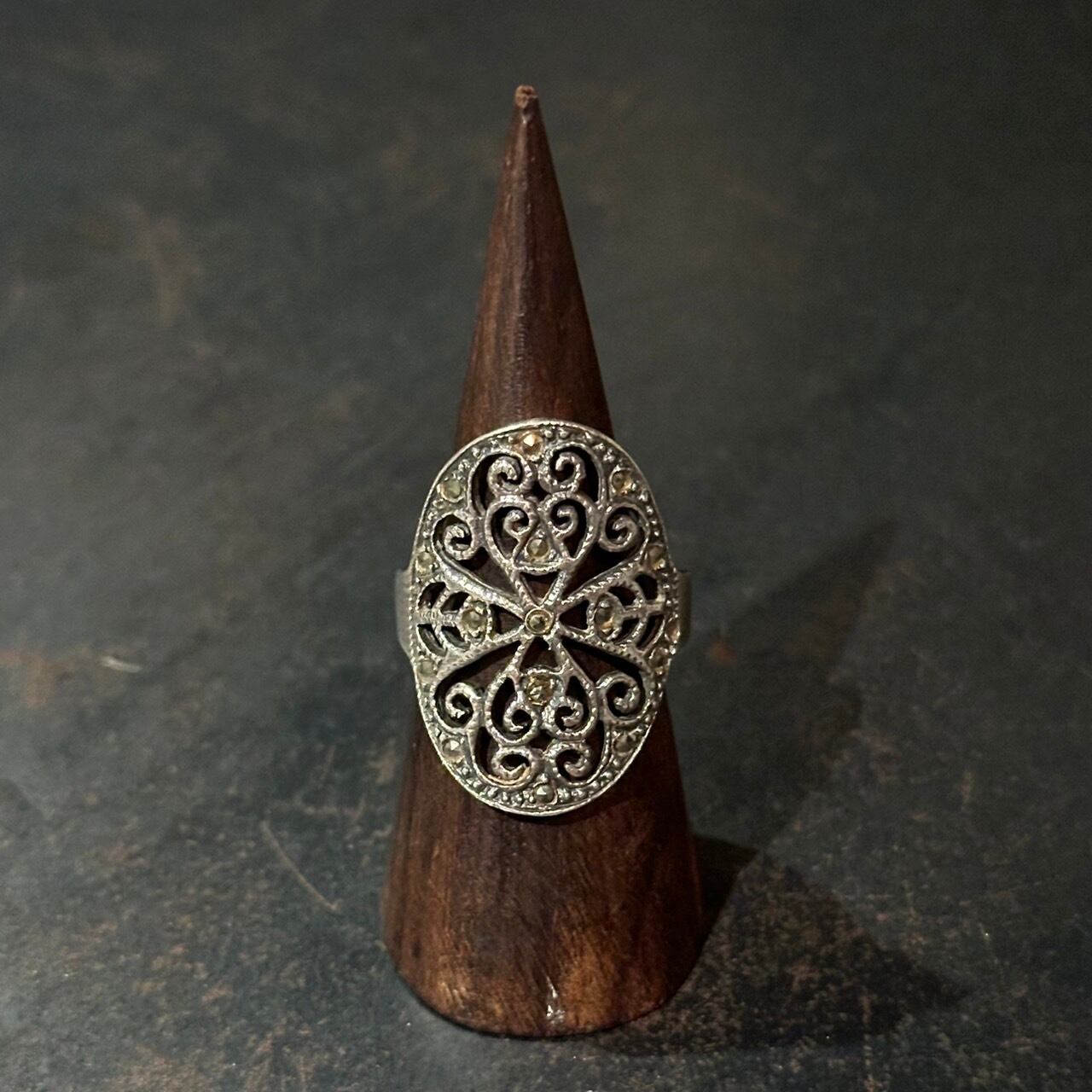 海外で買い付けたワイドプレートデザインのシルバーリングです。